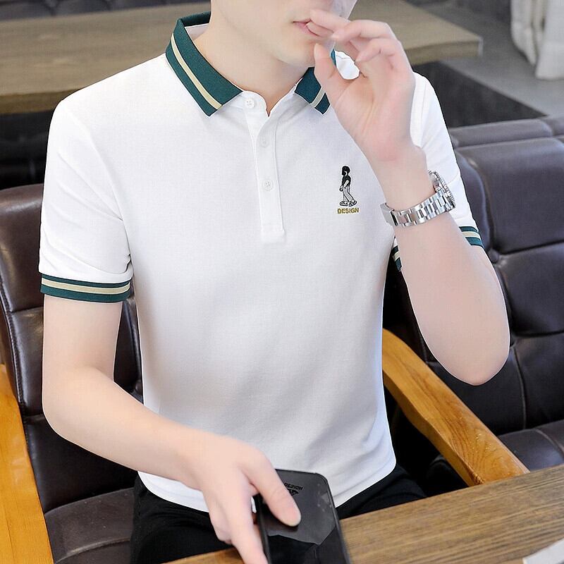 夏の半袖Tシャツメンズトレンドイン半袖トップ服トレンディなブランド襟付きハイエンドラペルポロシャツスリムボディシャツ レッド サマー 夏物 undao26948815157