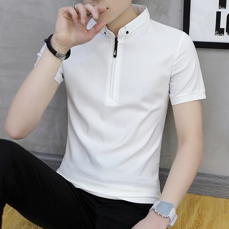ピュアコットン半袖ポロシャツメンズ 2023 新しい夏スリムフィットラペル tシャツカジュアル半袖シャツカラートップ V ネック サマー 夏物 Vネック undao75337148086