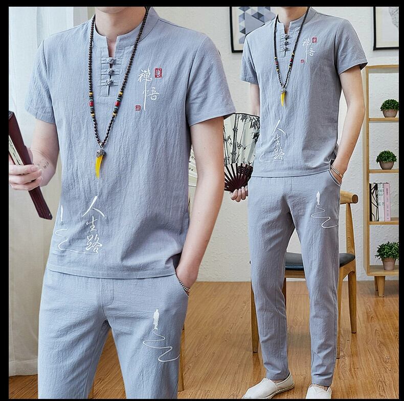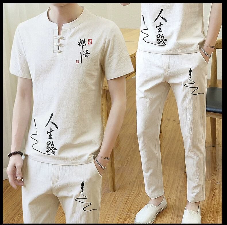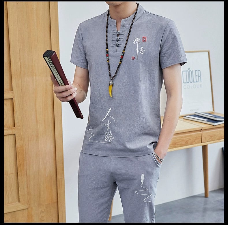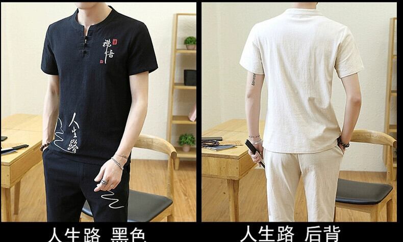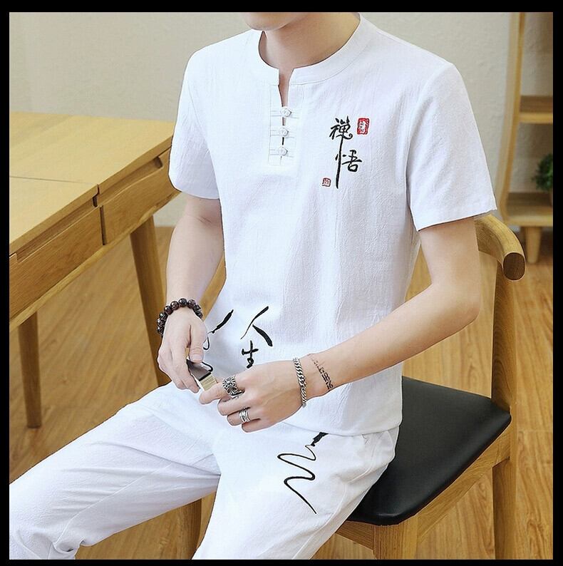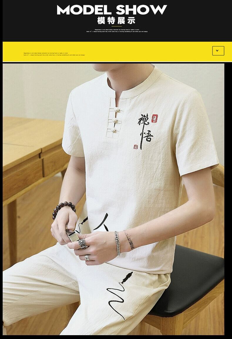 夏中国風仏教リネンスーツメンズバージョンのトレンド綿とリネン半袖 Tシャツ v2023 新唐スーツ漢服 コットン サマー 夏物 undao84310368850
