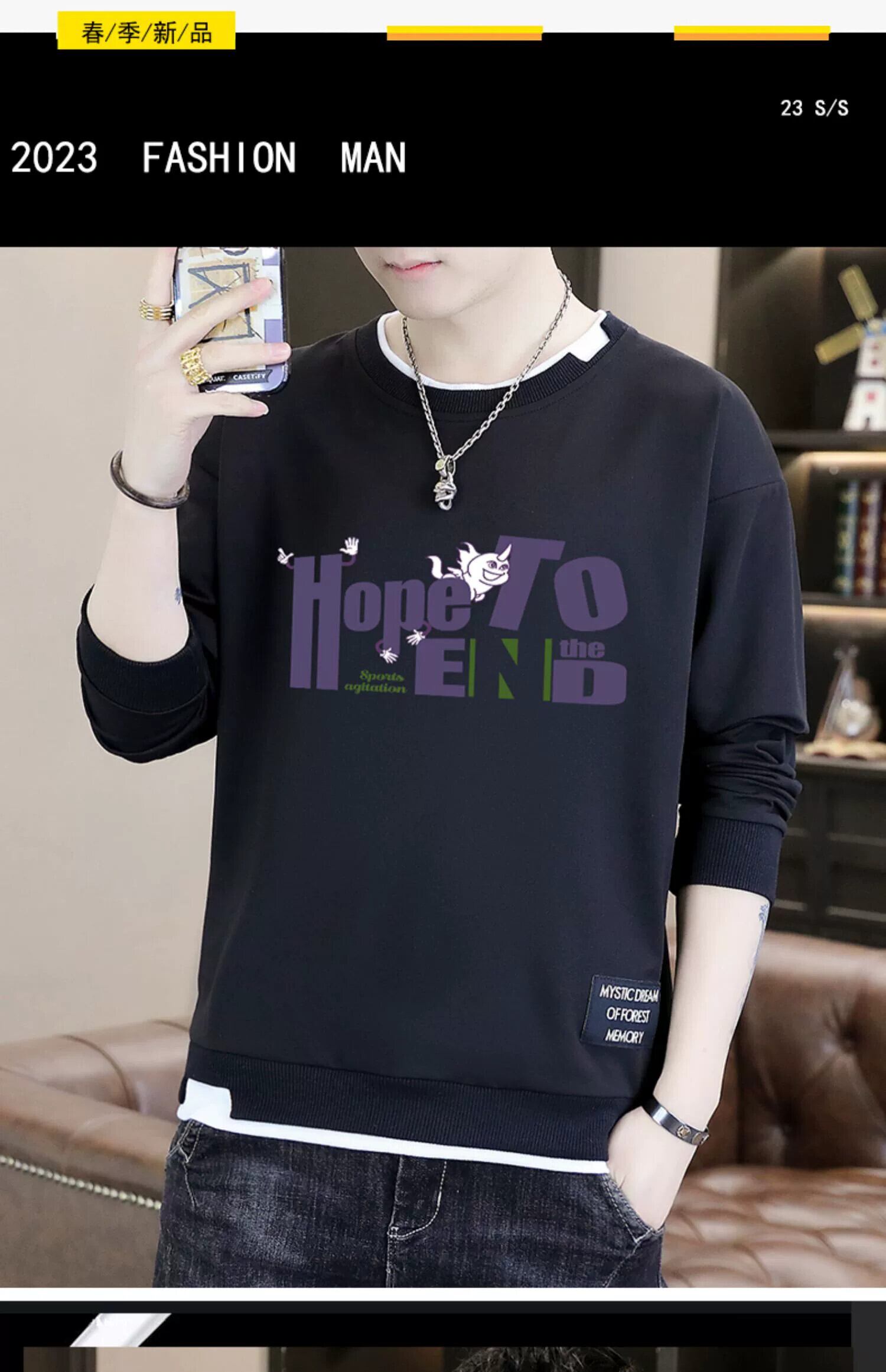 2023 新しい十代の春と秋の長袖 Tシャツメンズセーター中学生ハンサムな春服 ロング スプリング 春物 オータム 秋物 undao28098987185