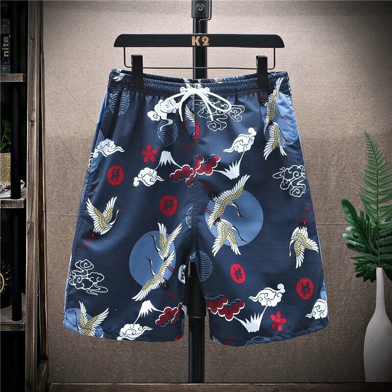 夏の新しいビーチウェアプリントショーツメンズイン薄部速乾アイスシルクパンツルーズカジュアル5点パンツ サマー 夏物 ブルマー undao25801416083
