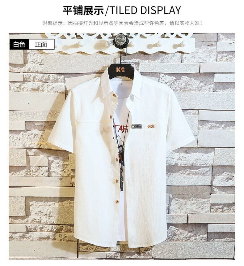 2023 新しいリネン半袖シャツメンズ夏薄いセクショントレンドメンズピュアコットンリネンシャツカジュアルスリムトップ サマー 夏物 undao44025291460