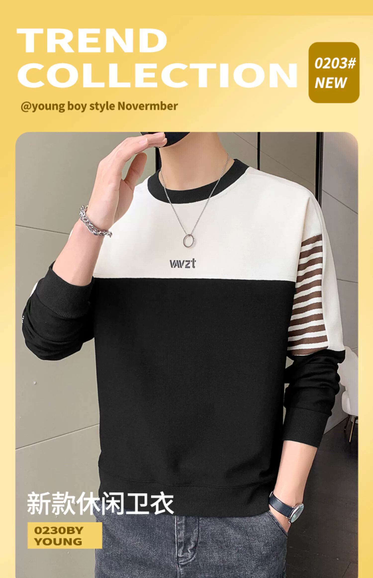 コントラストカラースプライシングセーターメンズラウンドネック春秋長袖Tシャツボーイズボトリングシャツ春トレンドルーズトップ服T ロング スプリング 春物 オータム 秋物 Oネック undao679838015