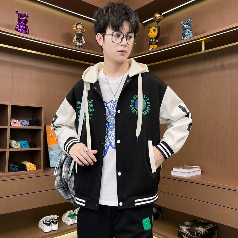 2023 春と秋のメンズフード付きセータージャケット潮トップ服青少年学生カーディガン野球 スプリング 春物 オータム 秋物 undao17984009022