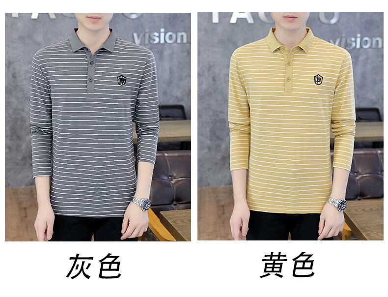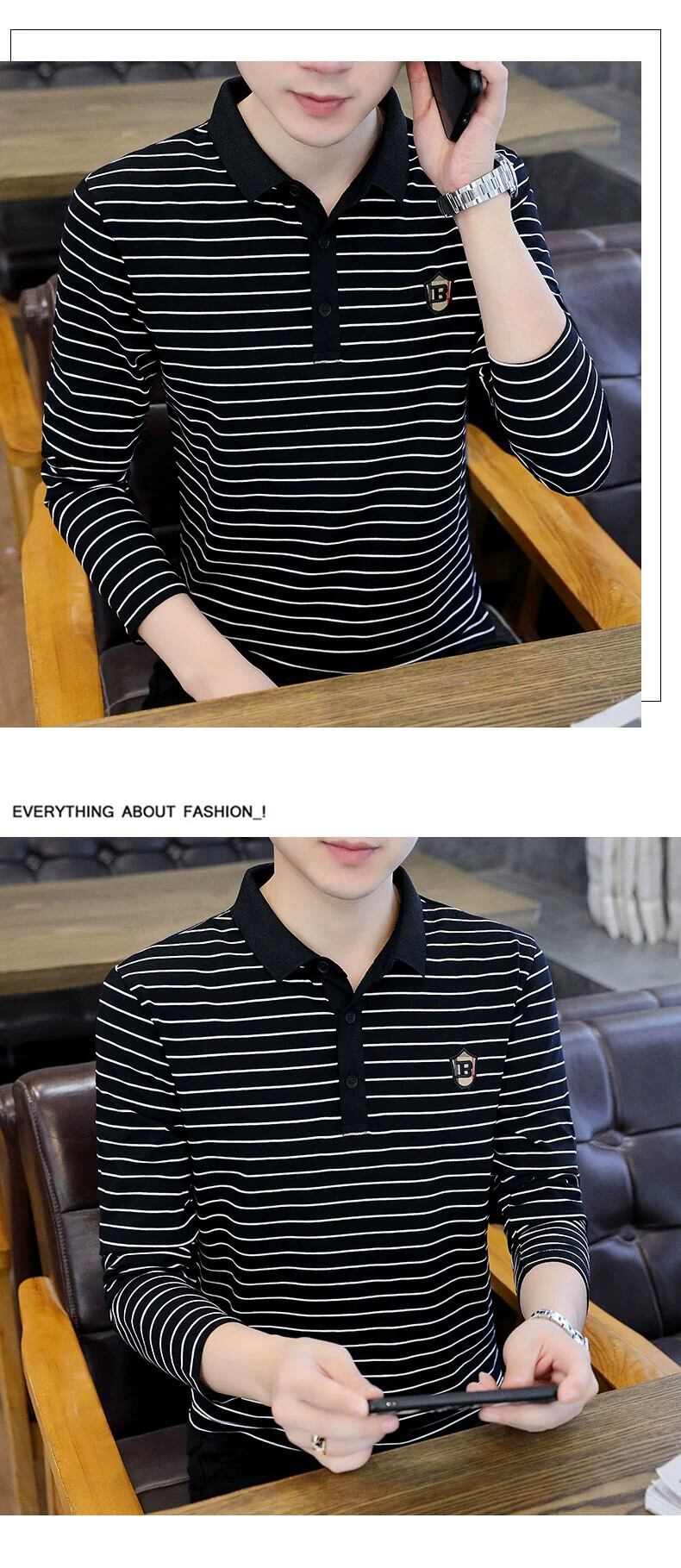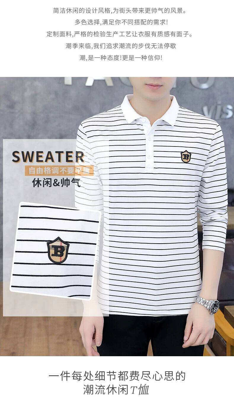メンズ長袖 Tシャツ夏の新ハイエンドラペルストライプ Tシャツカジュアル潮ブランド綿メンズトップ服 Tシャツ ロング コットン サマー 夏物 undao56832320909