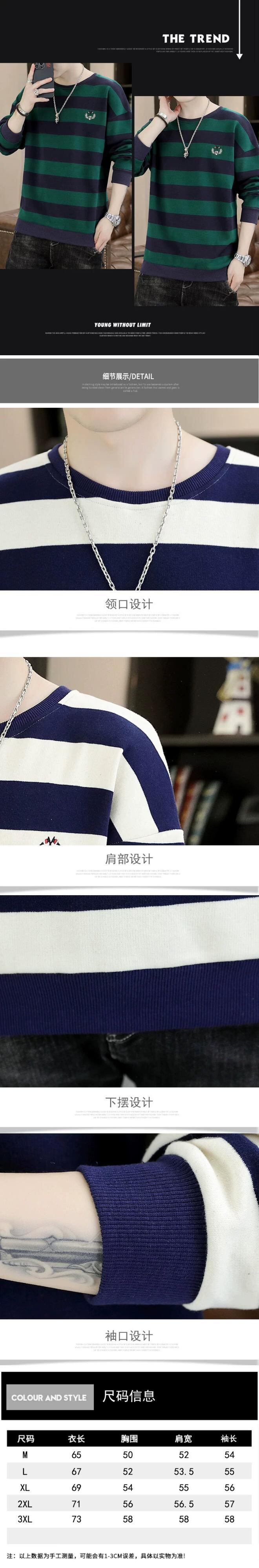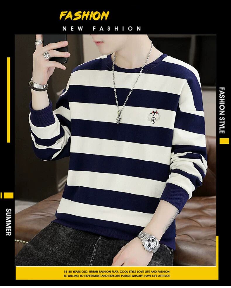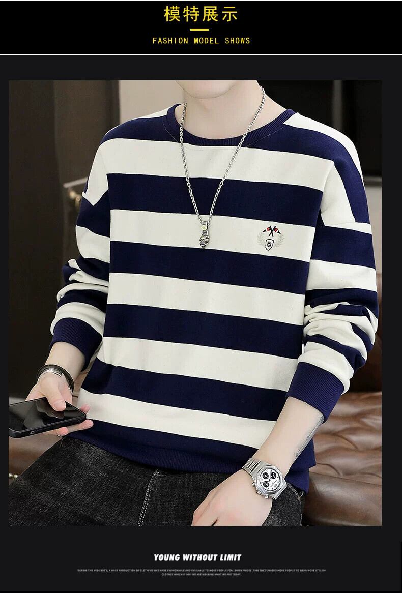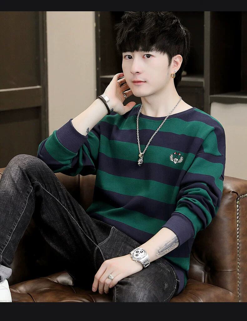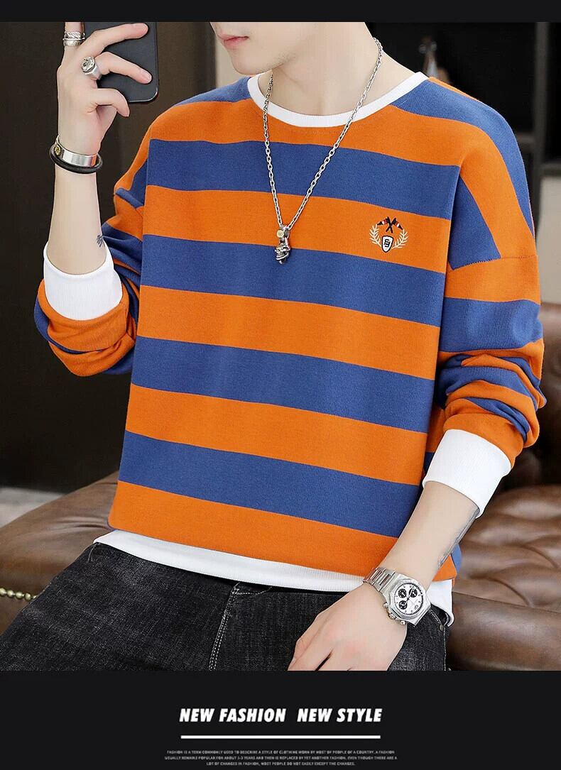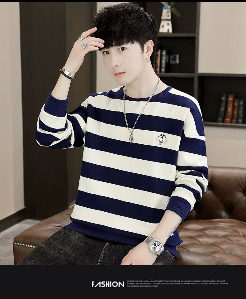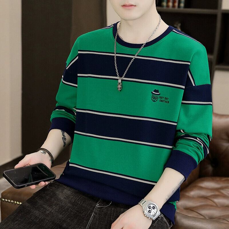 長袖セーターメンズ秋イントレンドボトミングシャツ服学生トレンディなブランドルーズストライプ tシャツトップ秋服 ロング オータム 秋物 undao63952876019