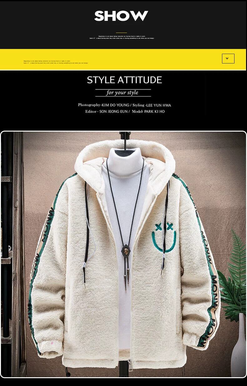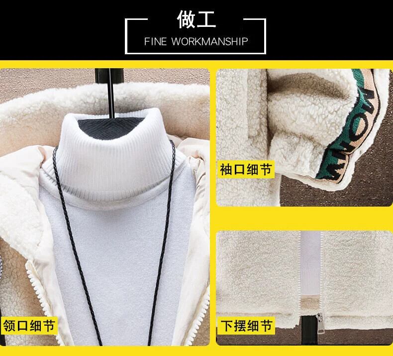 2023 冬のフード付き綿メンズスタイルトレンディな羊の毛刈りパッド入り綿冬服学生メンズ毛皮のコート コットン ウィンター 冬物 undao15634769421