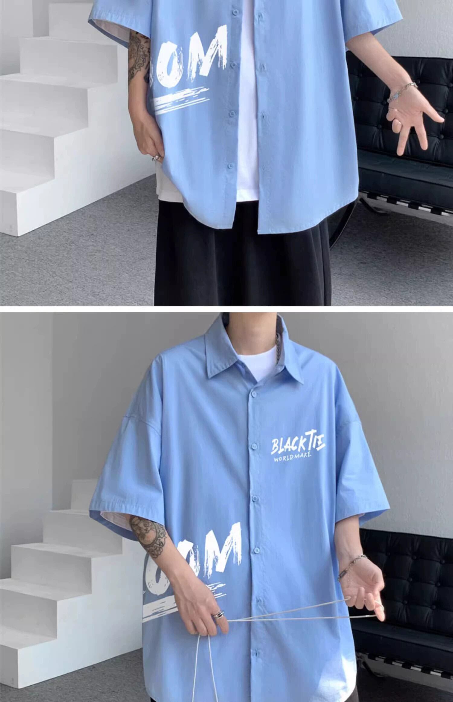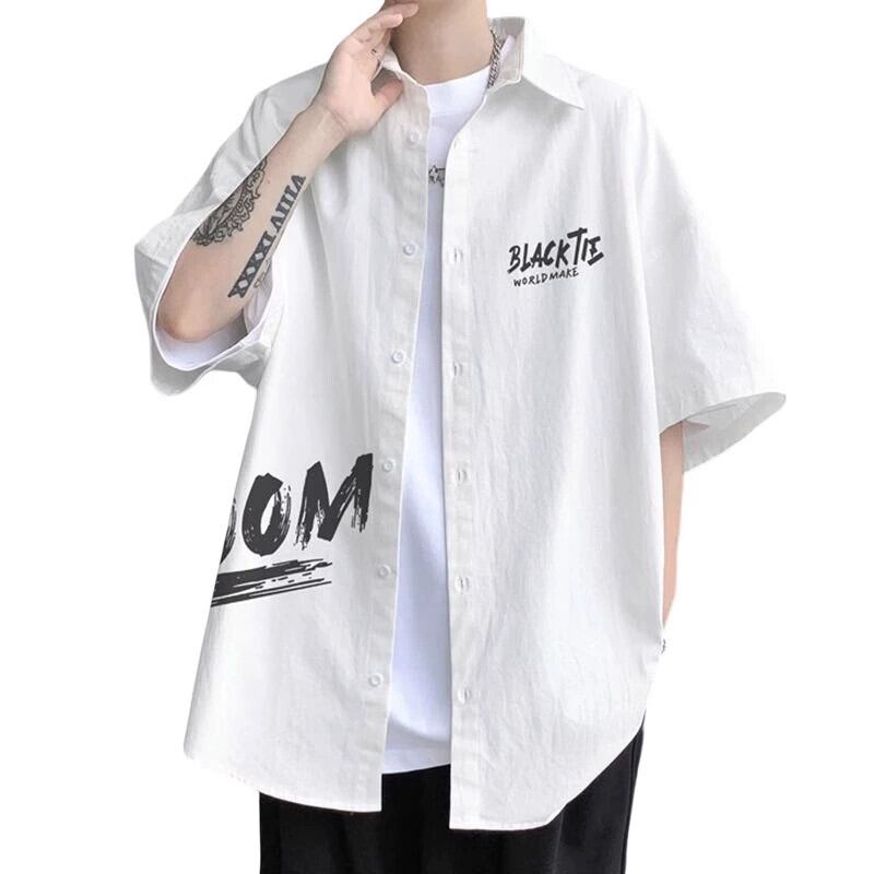 白い半袖シャツメンズ夏 ese ルーズコットントップボーイズトレンディなブランドプリント悪党ハンサムシャツジャケット ホワイト サマー 夏物 undao90342150202
