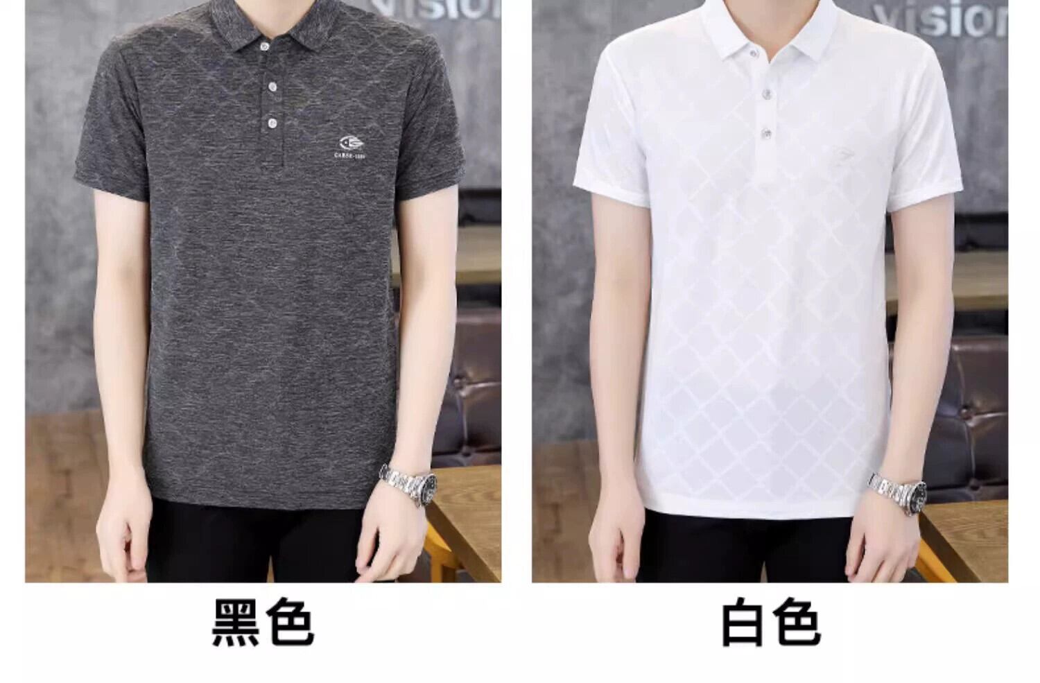 メンズ半袖Tシャツ夏カジュアル薄地速乾アイスシルクポロシャツハイエンドアイスリネン半袖襟付きTシャツ レッド サマー 夏物 undao54347913028