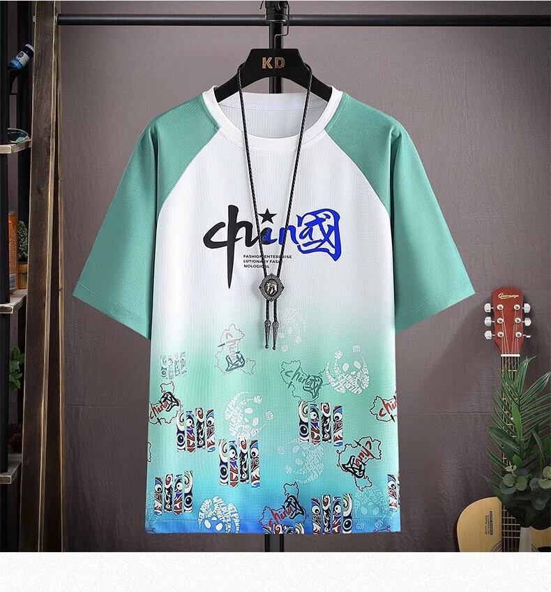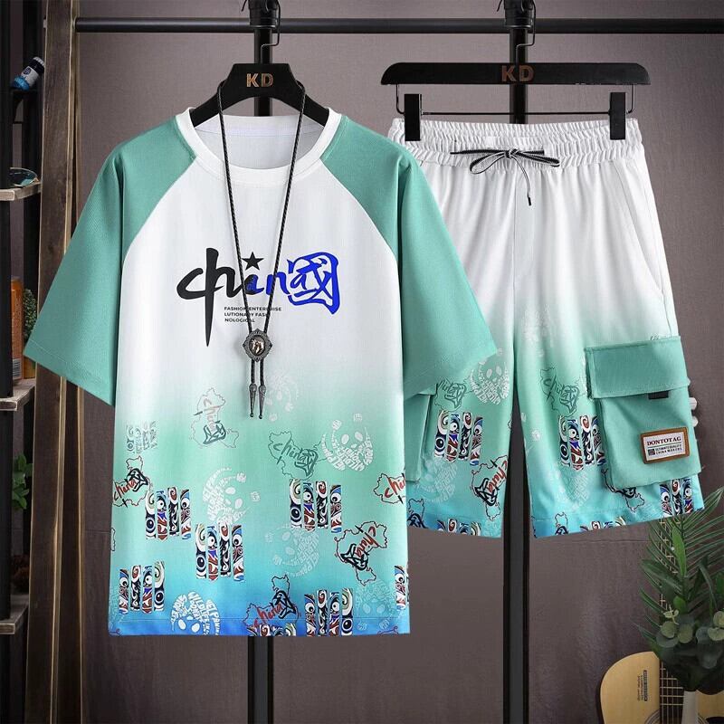 夏のグラデーション半袖メンズ T シャツ ティーンエイジャー ビッグ ボーイ 学生ショーツ セット ハンサム カジュアル スポーツ スーツ サマー 夏物 ブルマー Tシャツ undao77509592954