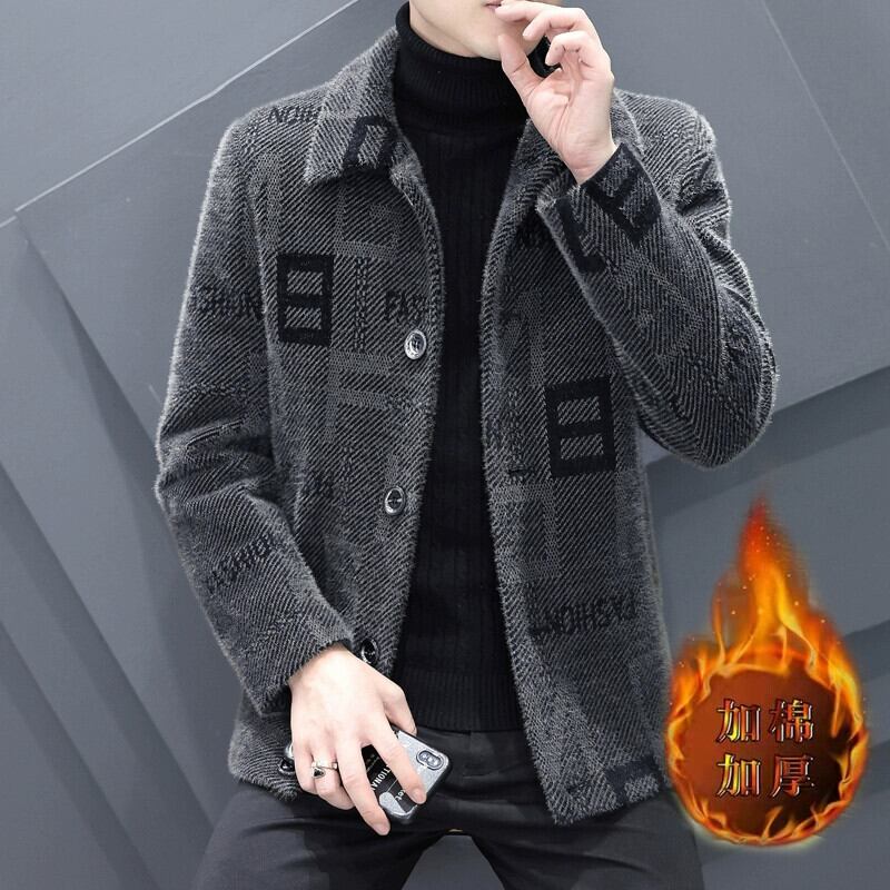 冬のゴールデンミンクベルベットジャケットメンズスタイルスリムユースプラスコットン厚いウールコート冬のショートウインドブレーカー ウィンター 冬物 undao35034646401