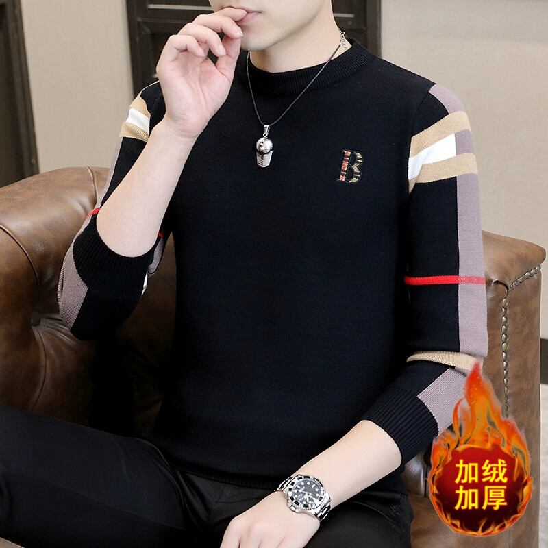 2023 秋と冬の新メンズ長袖 Tシャツトレンディなニットボトムシャツメンズ秋服プラスフリースセータートップ服 ロング オータム 秋物 ウィンター 冬物 undao22349806494
