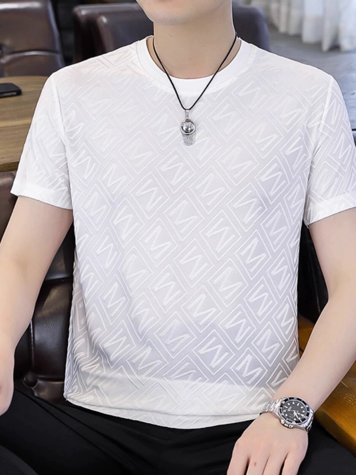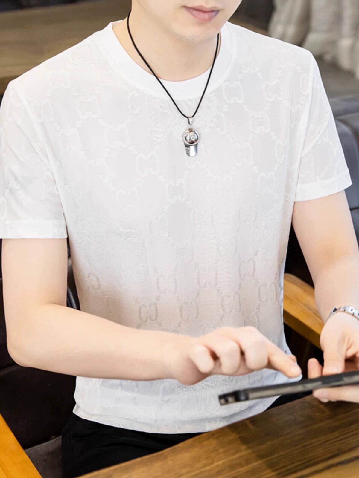 速乾半袖Tシャツメンズ夏潮ブランドジャガードアイスセンス通気性Tシャツ中空透視半袖薄手トップス サマー 夏物 undao69171589745
