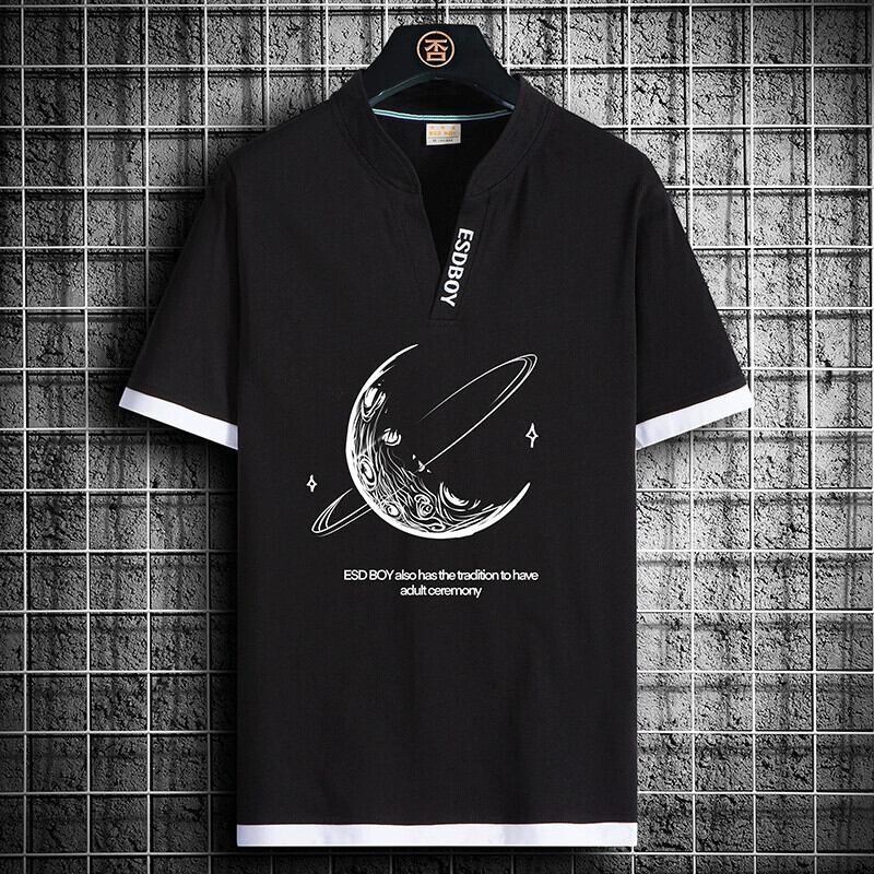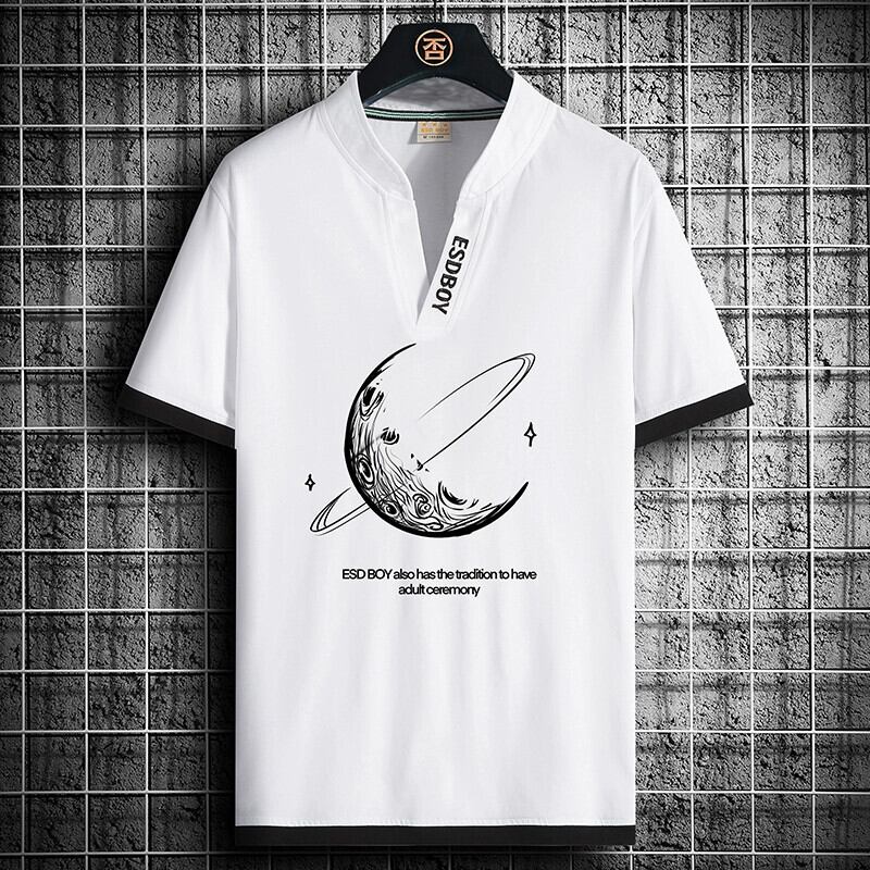 V ネック半袖メンズ夏トレンディな多用途ポロシャツティーンエイジャーハンサムガスシャツルーズプリントコットンメンズ T シャツ サマー 夏物 Vネック Tシャツ undao5918433816