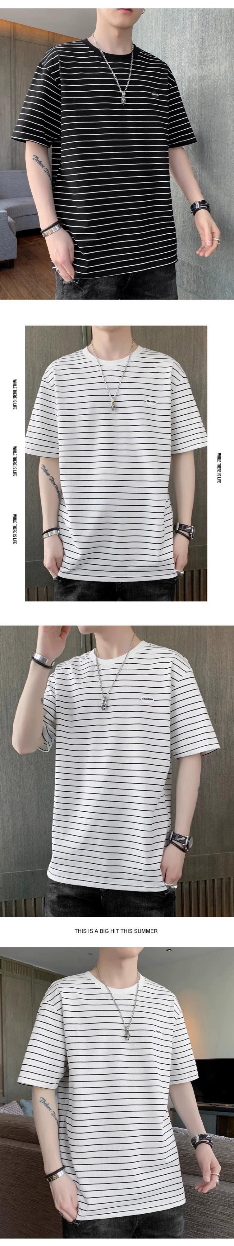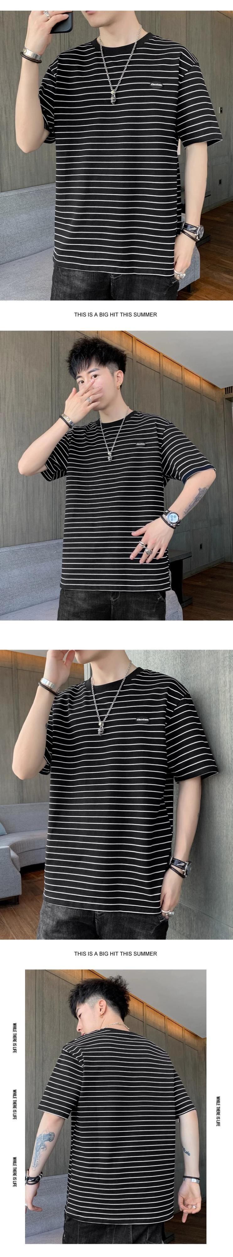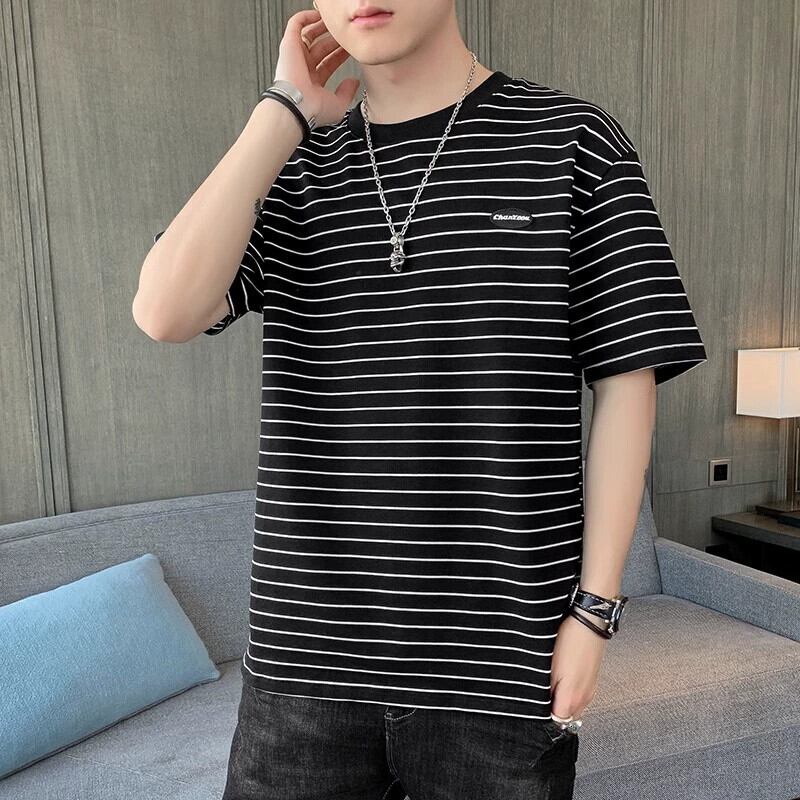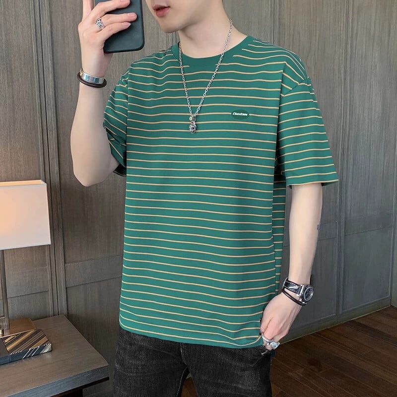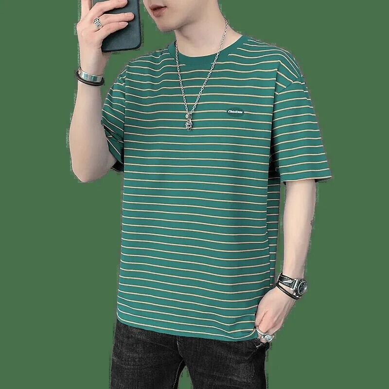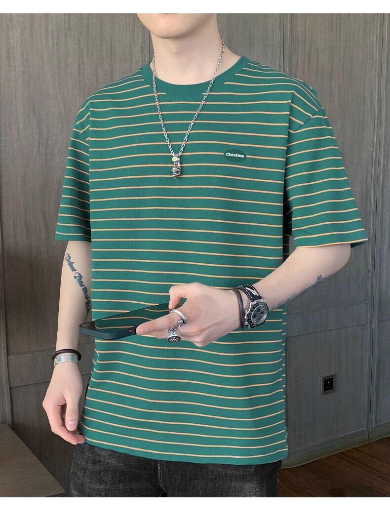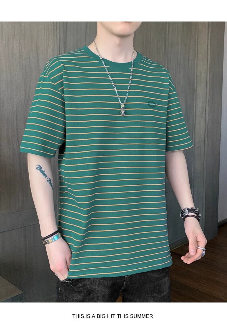 ボーイズ半袖Tシャツ夏のトレンドインルーズグリーンストライプメンズ半袖トレンディブランド多用途若者服 サマー 夏物 undao14310930603