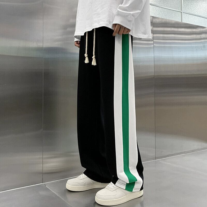 アメリカのトレンディなブランドインパンツメンズ春秋ストレートカジュアルパンツストライプハイストリートルーズスポーツワイドレッグスウェットパンツ スプリング 春物 オータム 秋物 undao25863644600
