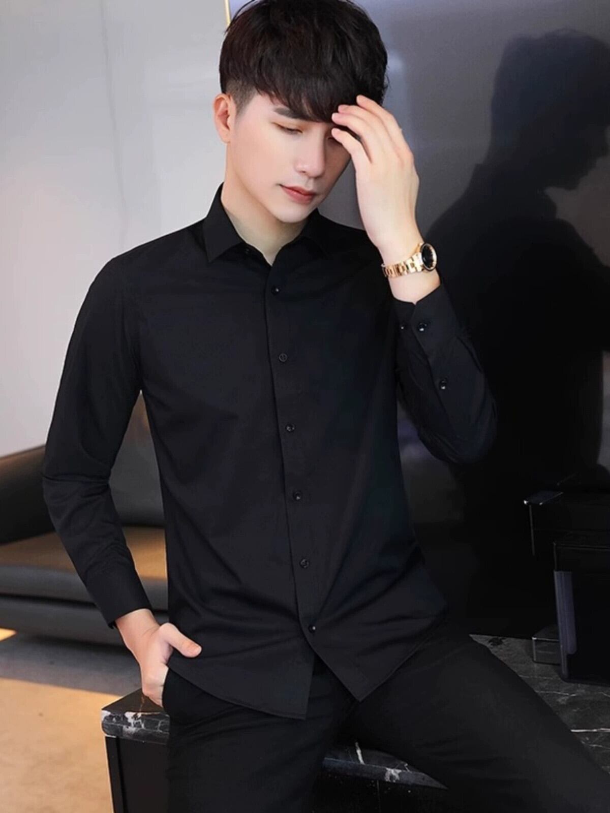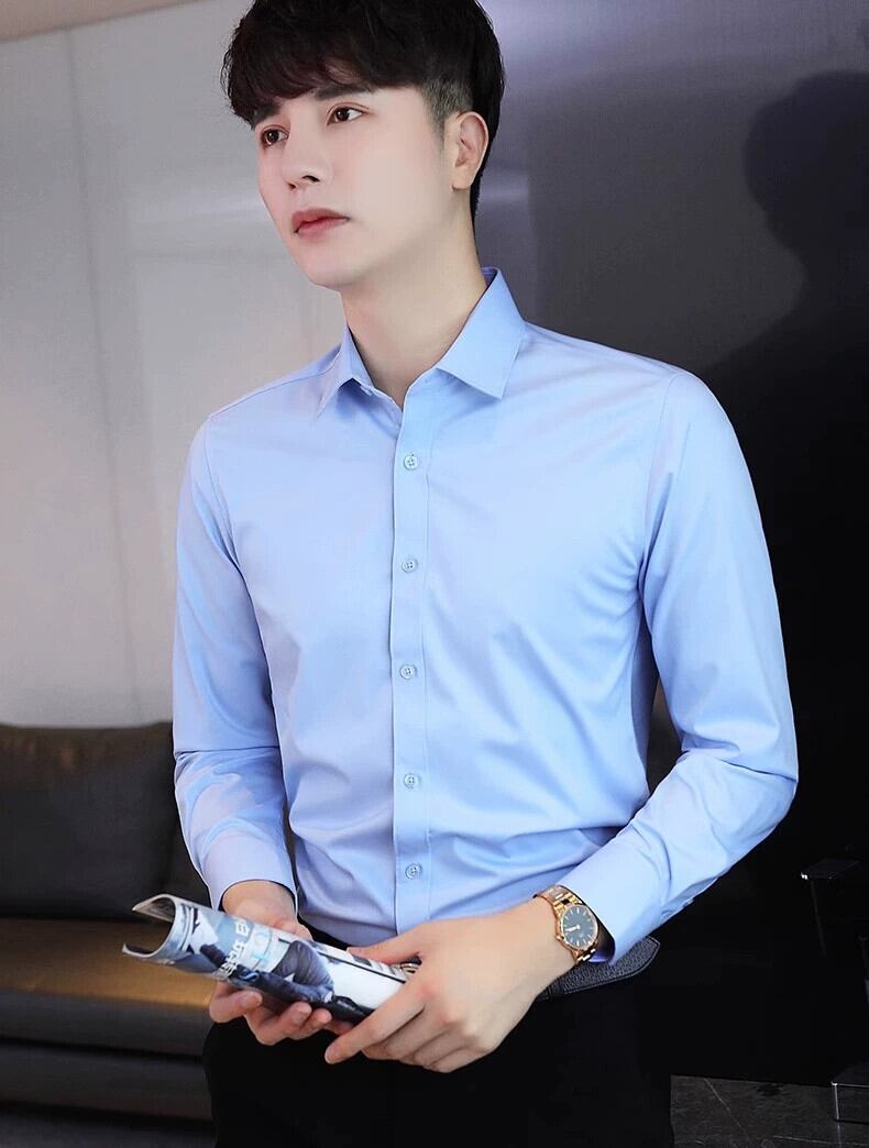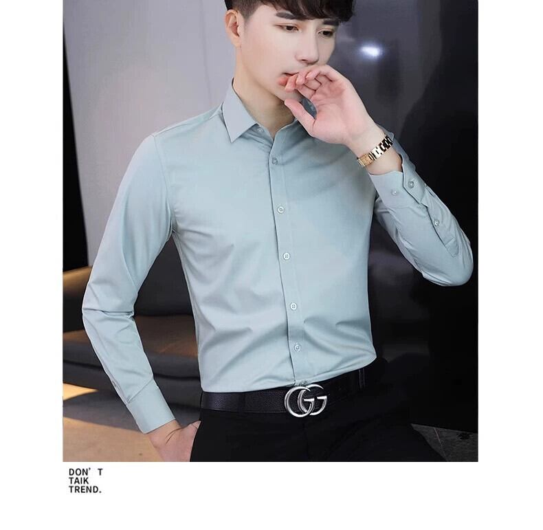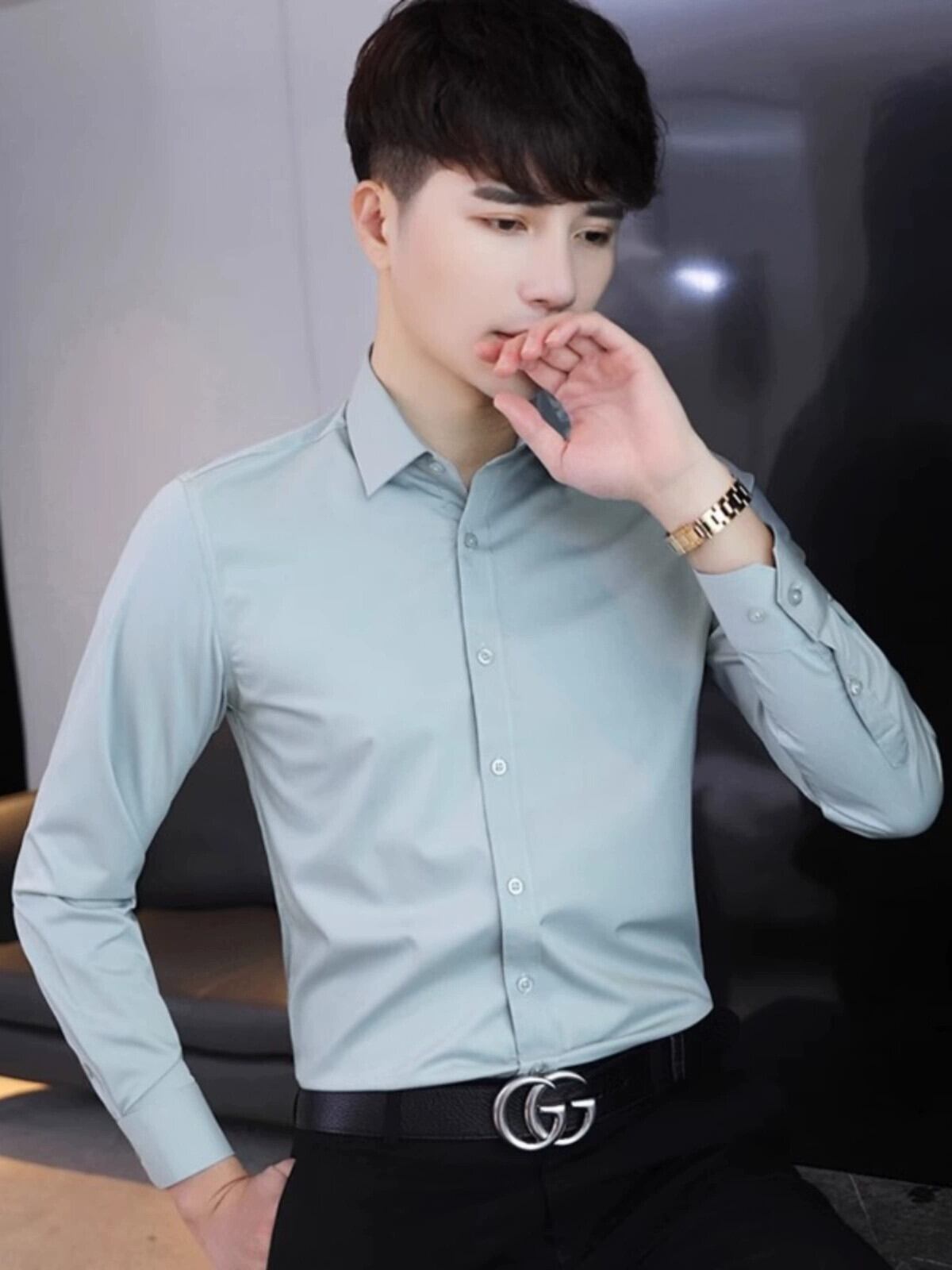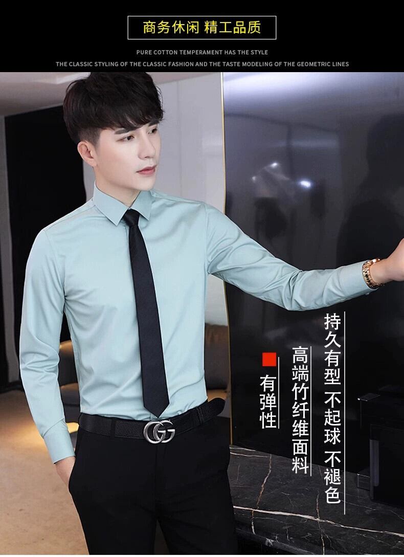 春秋 ライトグリーン シャツ メンズ 長袖 ビジネスカジュアル ノーアイロンシャツ トレンド ハンサム 万能インチシャツ 大きいサイズ ロング 大きめサイズ スプリング 春物 オータム 秋物 undao61985268200