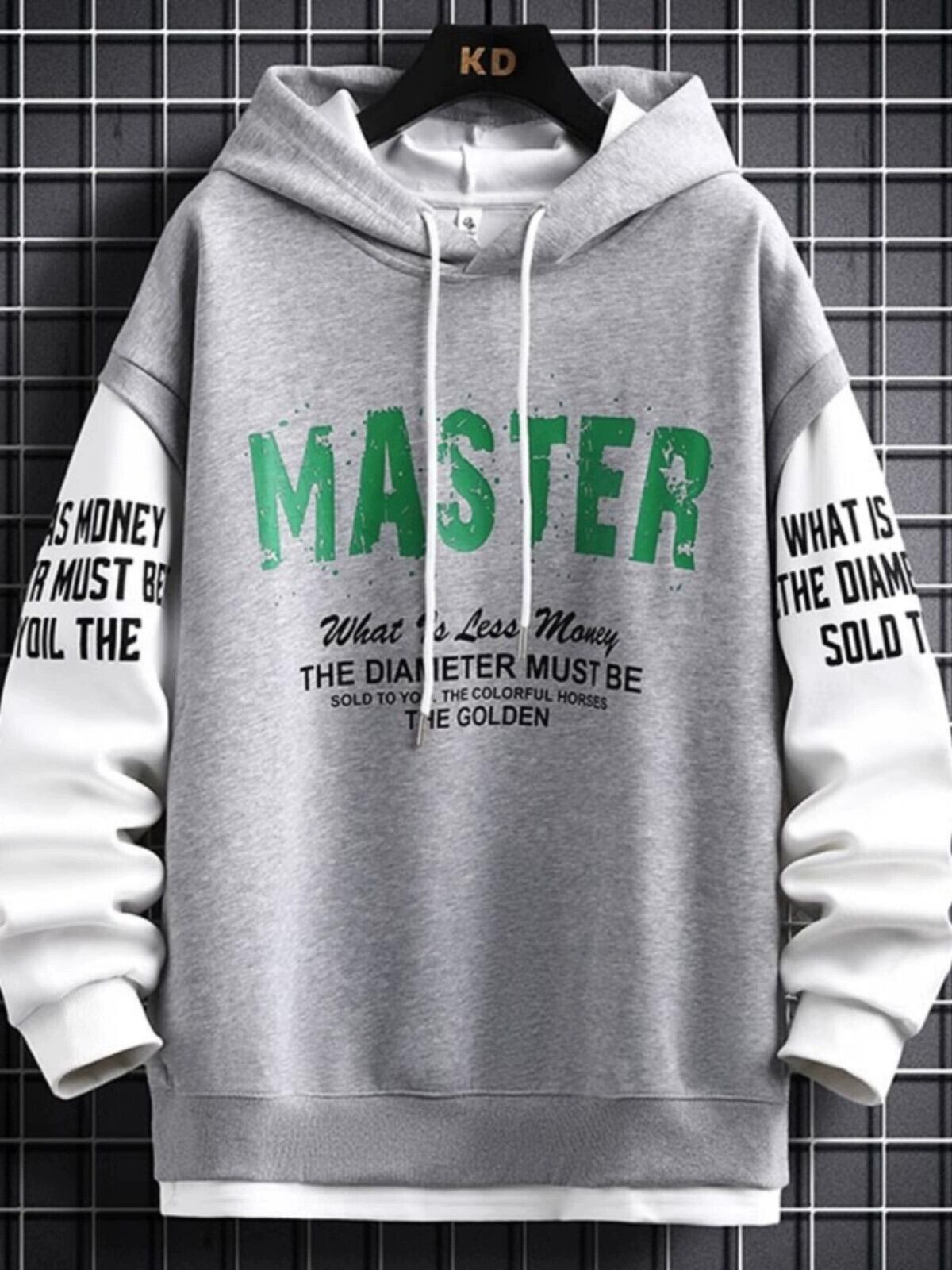 フェイクツーピーススウェットシャツメンズフード付き春秋トレンディブランドスプライシングボトリングシャツメンズルーズでハンサムな若者の秋服 スプリング 春物 オータム 秋物 undao81978236894