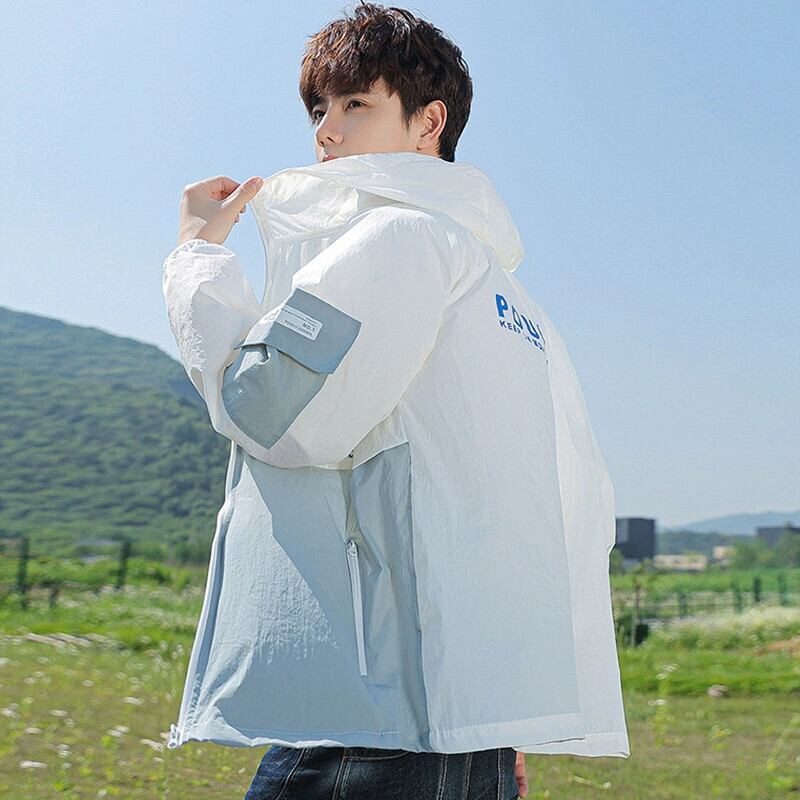 日焼け止め服メンズ夏薄い釣りアイスシルクフード付き日焼け止め服ジャケットジャケットカジュアルカラーマッチング屋外肌服 サマー 夏物 undao58918273991