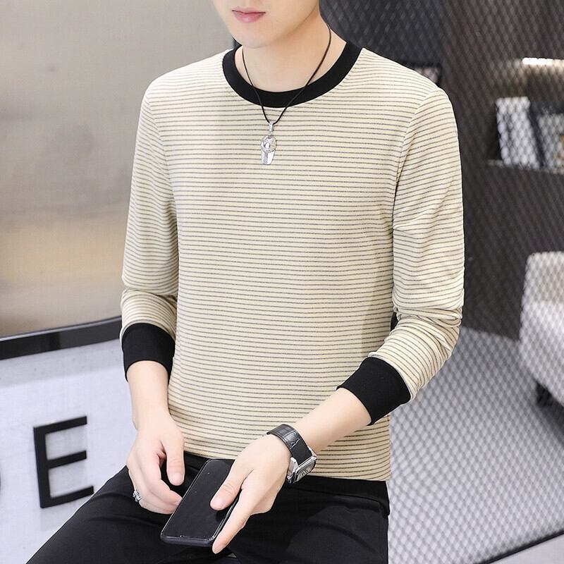 春と秋のインナーレイヤリングシャツメンズ、長袖両面ジャーマンベルベットストライプTシャツ、サーマルアンダーウェア、秋服、トレンディなTシャツ ロング スプリング 春物 オータム 秋物 undao6256320249