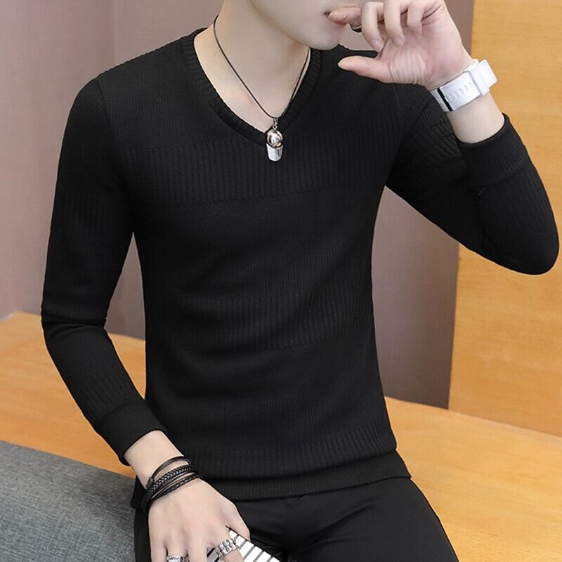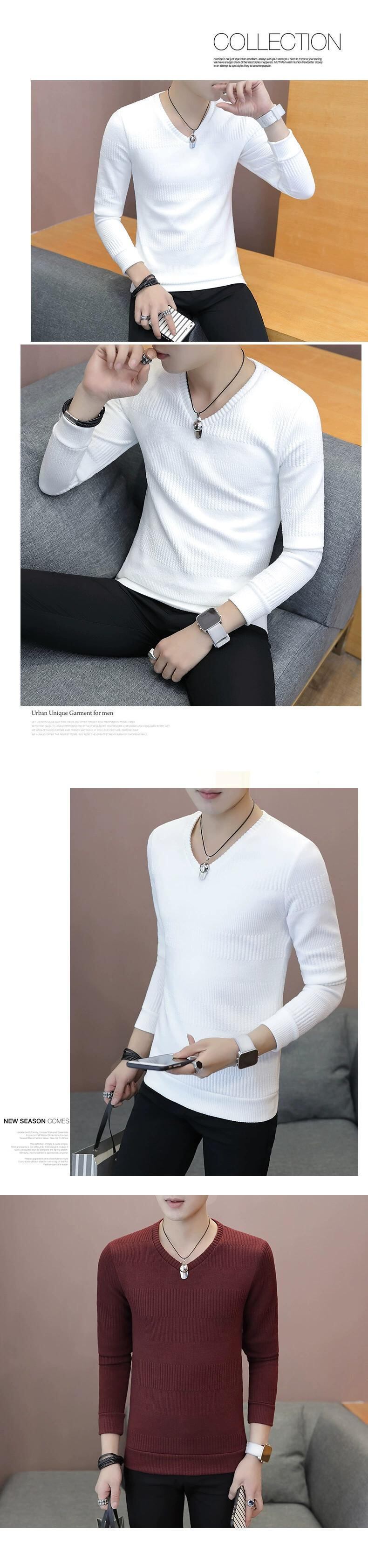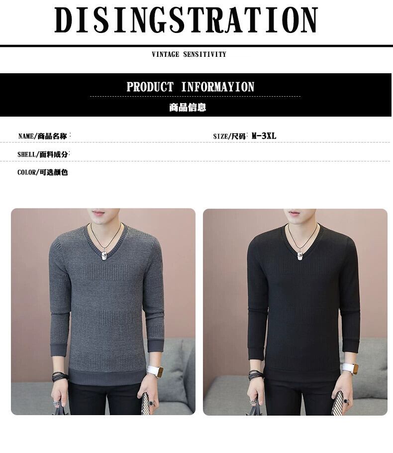 春と秋の V ネックセーターメンズオールマッチ Tシャツ薄いトップスバージョン無地プラスベルベット肥厚長袖ボトムシャツメンズ ロング スプリング 春物 オータム 秋物 Vネック ソリッドカラー undao96470498354
