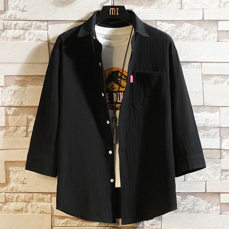 半袖シャツメンズ、夏のトレンディな七分袖ラペル服、トレンディなブランドのボタン装飾シャツ、ティーンジャケットメンズ サマー 夏物 undao66166526040