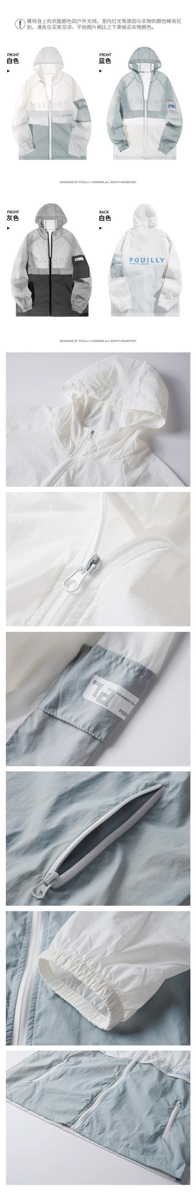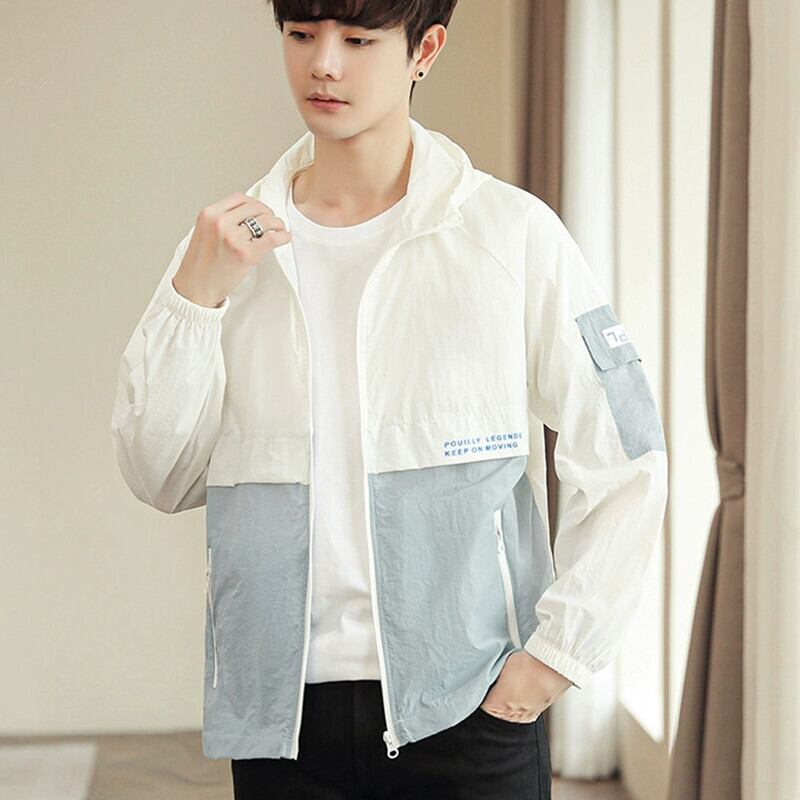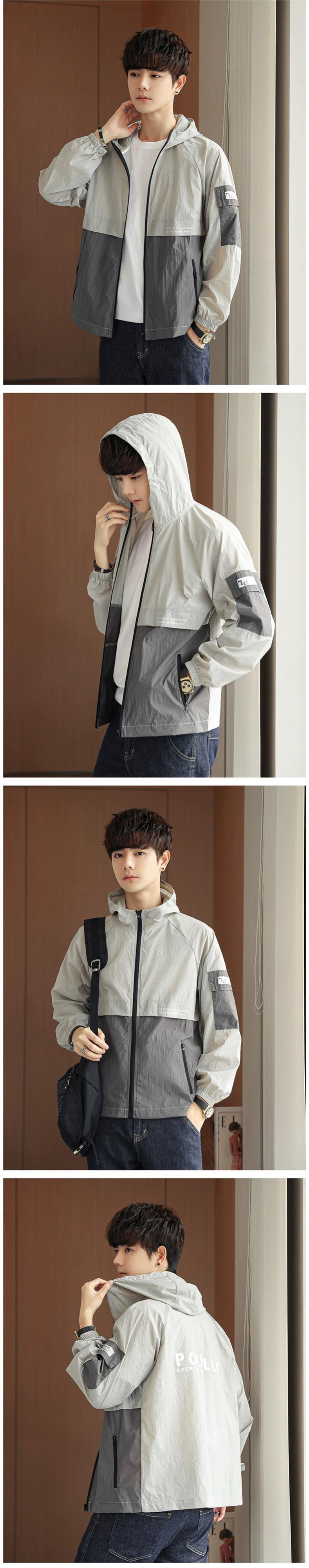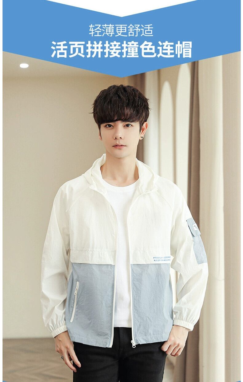 超薄型通気性日焼け止めジャケットメンズ 2023 夏カラーブロックジャケットアイスシルクジャケットメンズスポーツ防風ジャケット サマー 夏物 undao24587786737