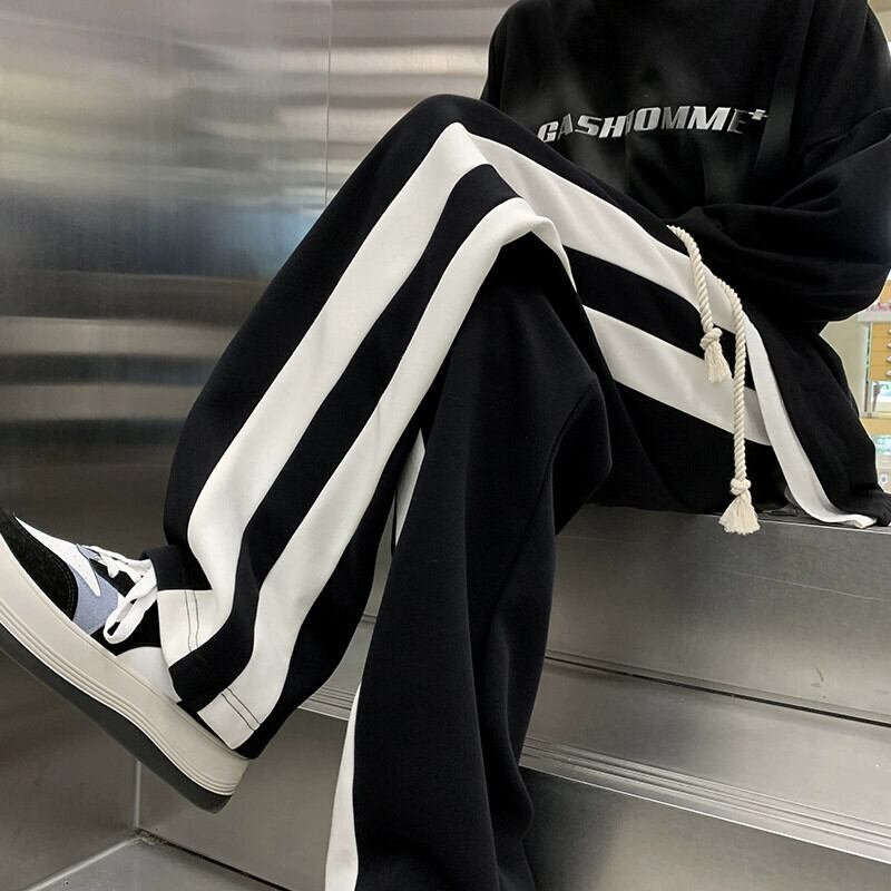コントラストカラースウェットパンツメンズ春秋ヨーロッパとアメリカのハイストリート雰囲気パンツトレンディなブランドイントレンド多目的ストレートカジュアルパンツドレープ スプリング 春物 オータム 秋物 ヨーロピアン undao35347654597