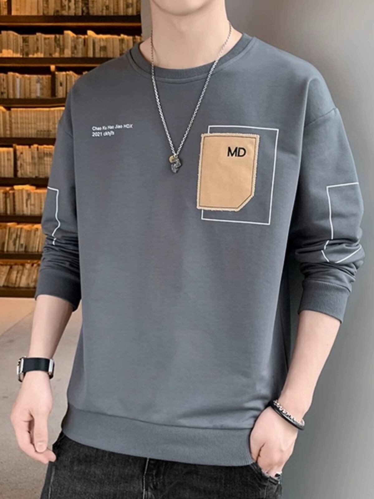 メンズ長袖 Tシャツトレンディなルーズトレンディなブランドインス小さなシャツ 2023 新しい Tシャツ春と秋のトップストレーナー ロング スプリング 春物 オータム 秋物 undao62529866437
