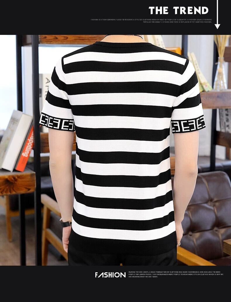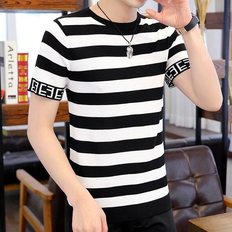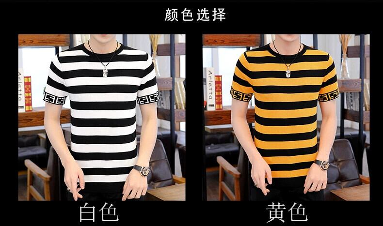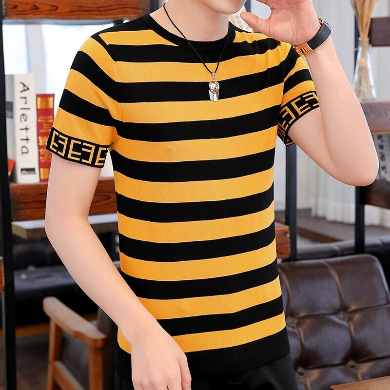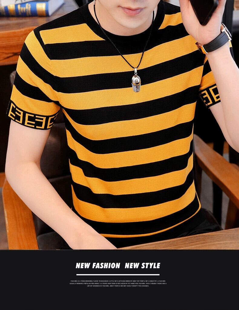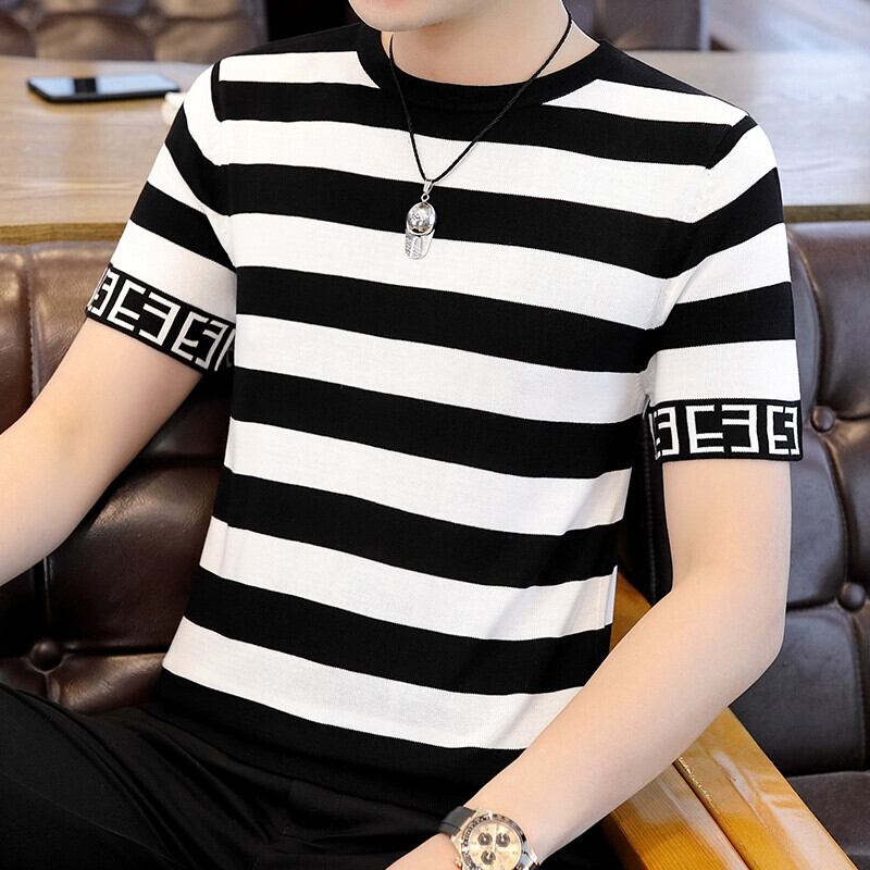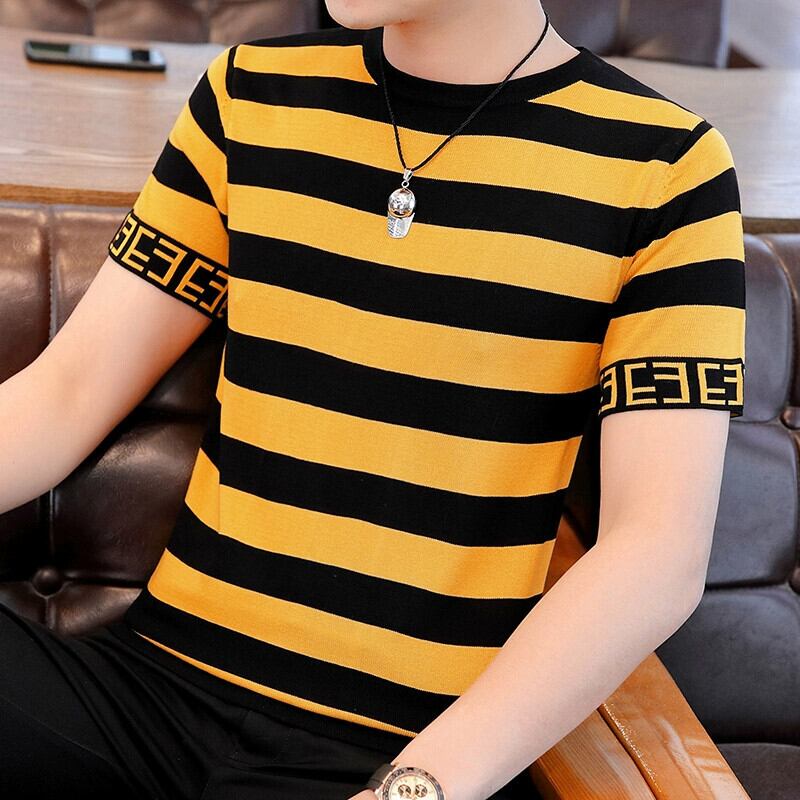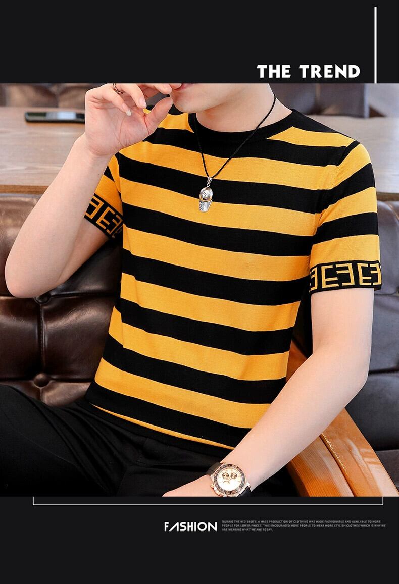 アイスシルクストライプ半袖 tシャツメンズ ins ファッションブランド半袖 2023 新しいメンズ夏のセーター服トレンド サマー 夏物 undao77144165439