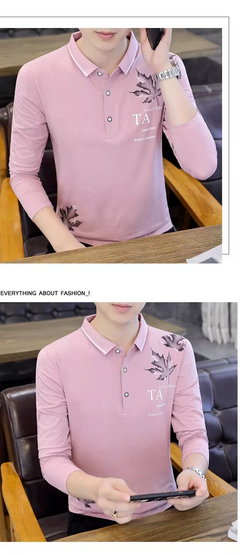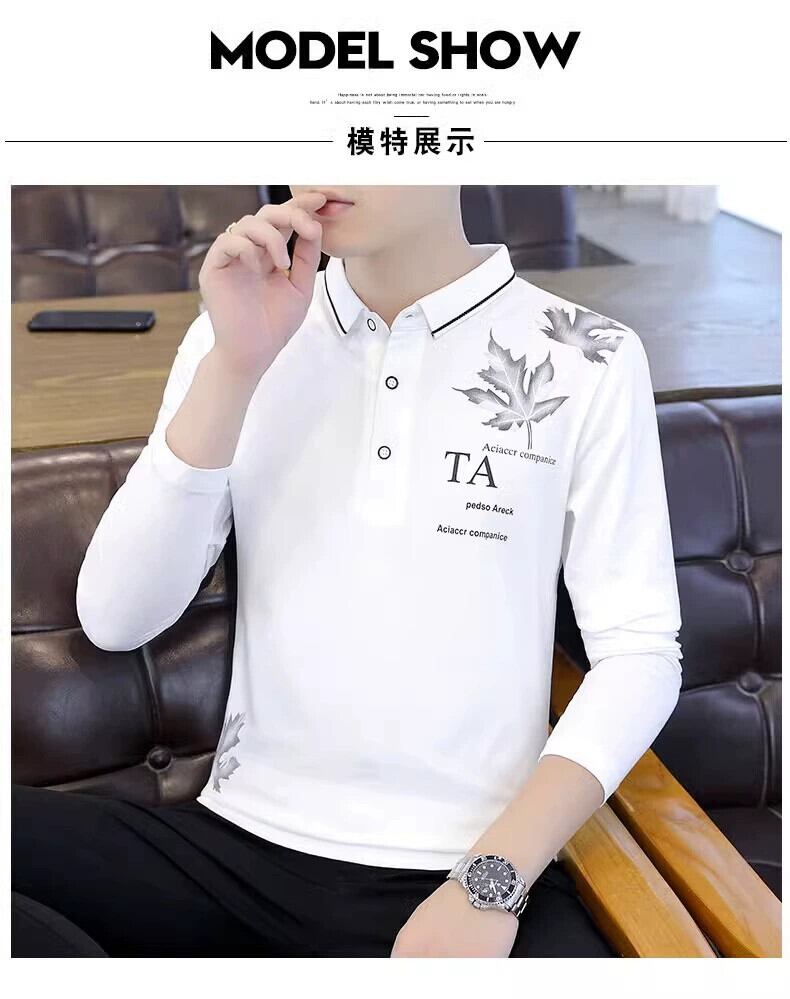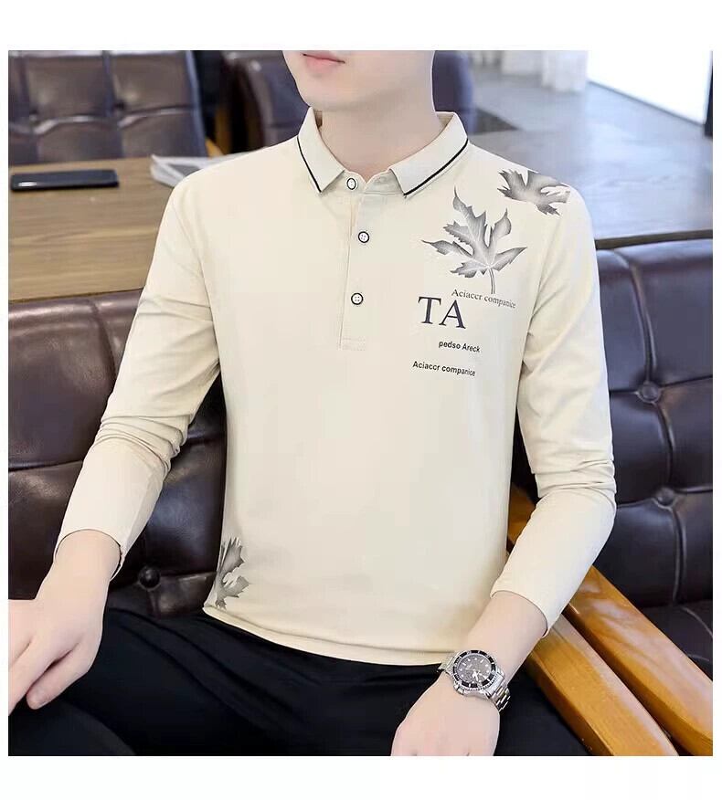 純綿ポールメンズスクエアネック長袖Tシャツポロシャツ春と秋のトレンドの襟付きTシャツTラペル秋のスウェットシャツ ロング レッド コットン スプリング 春物 オータム 秋物 スクウェア undao57997020639