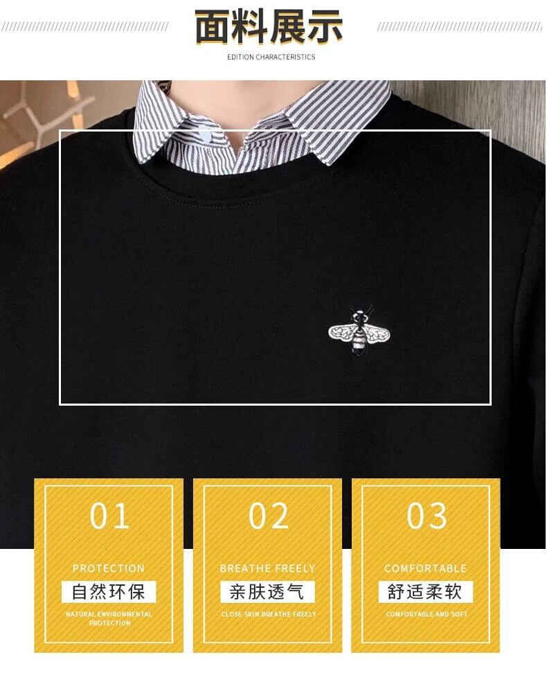 メンズフェイクツーピーススウェットシャツシャツ襟刺繍リトルビー長袖ボトシャツファッショントレンド新しい秋と冬の紳士服 ロング レッド オータム 秋物 ウィンター 冬物 undao28528078787