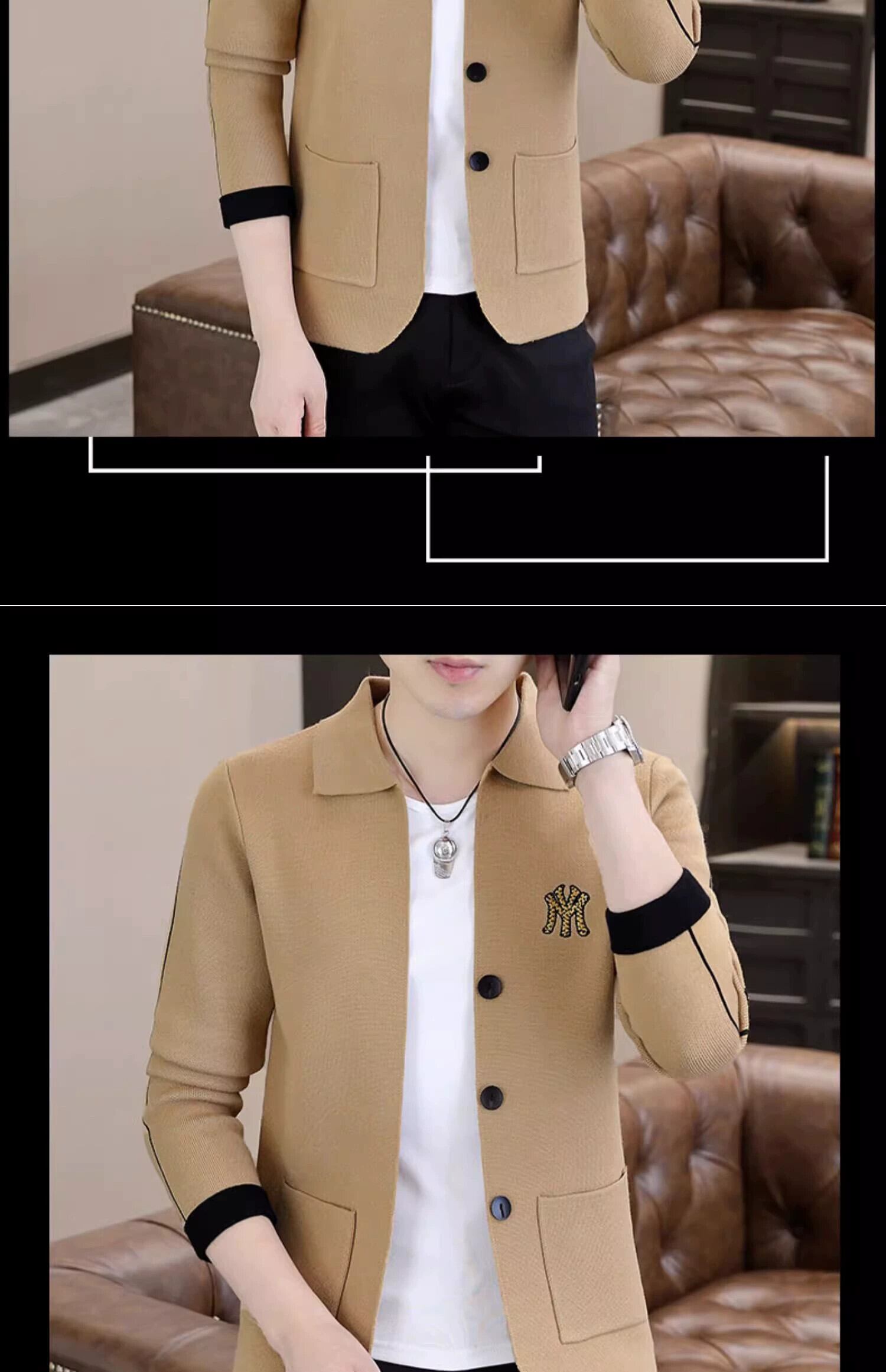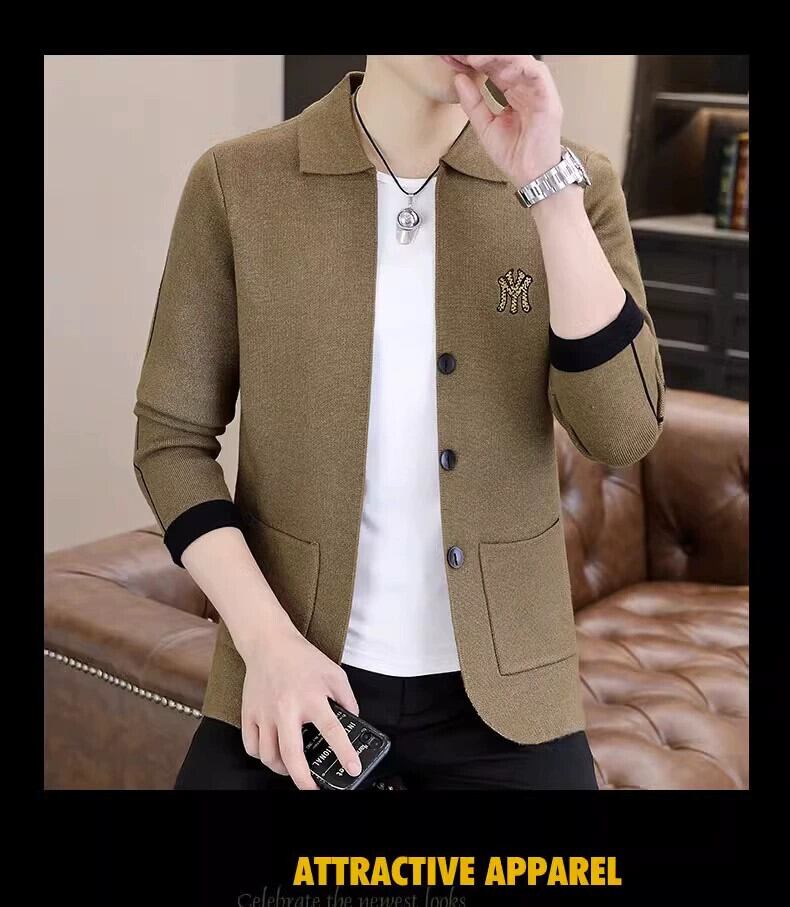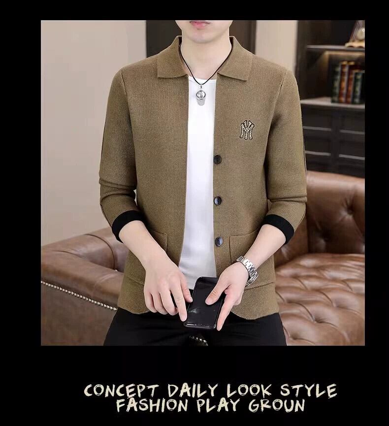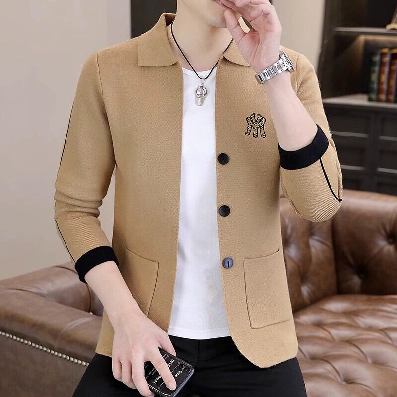 春と秋のトレンディなブランドデザインのニットカーディガンジャケットメンズ刺繍ラペルトップ冬カジュアルアウターセーター レッド スプリング 春物 オータム 秋物 ウィンター 冬物 undao11594859172