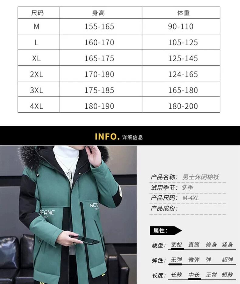 ダウンジャケットメンズミッドレングストレンディなハンサムな厚みのあるジャケットプラスサイズのユーススリムコットンジャケットで冬を暖かく保ちます 大きめサイズ ウィンター 冬物 undao45118401123