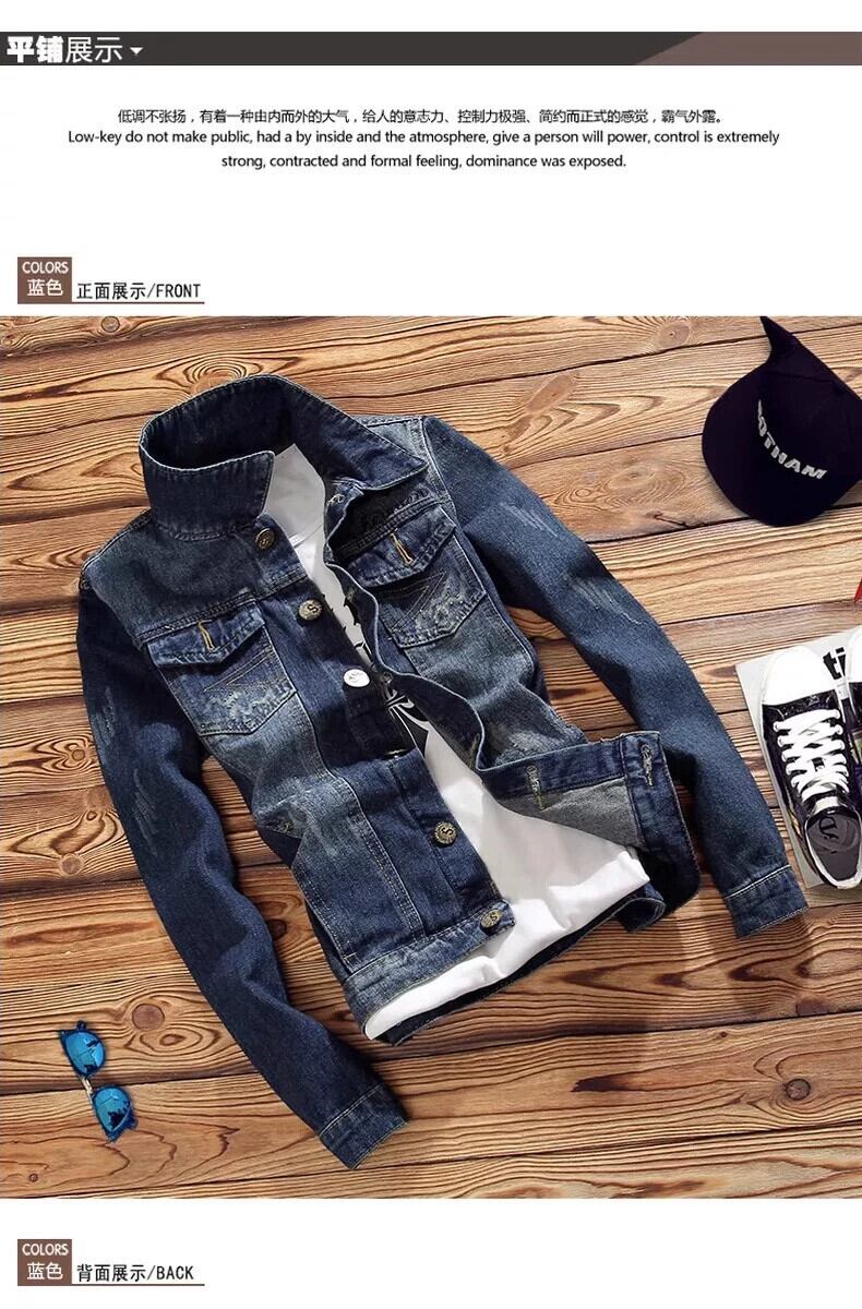 秋冬デニムジャケットメンズスタイルスリムデニムジャケット破れ薄いデニムジャケット若い学生メンズジャケットトレンディ オータム 秋物 ウィンター 冬物 undao40189941506