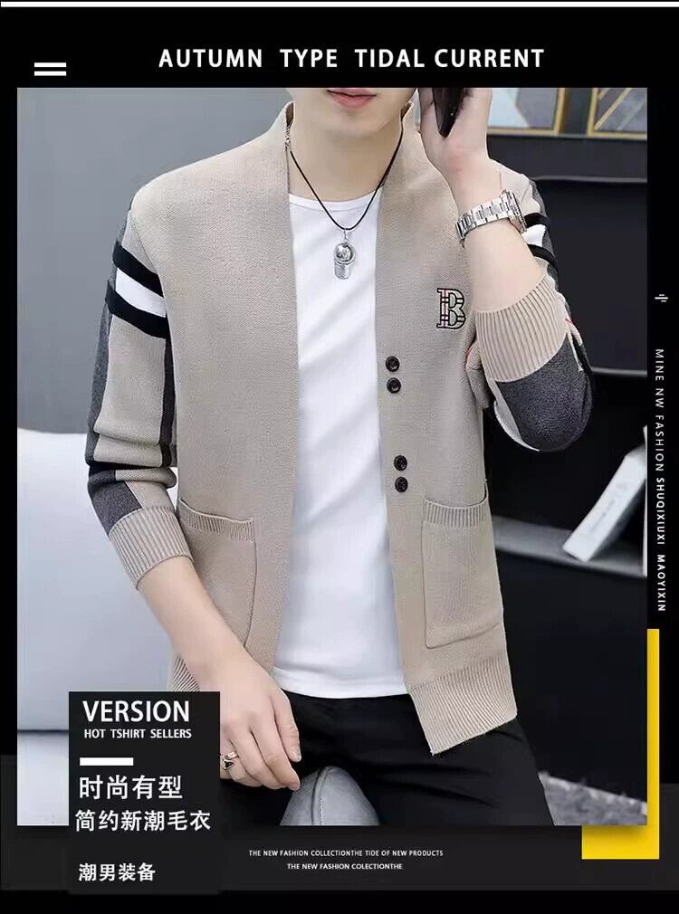 トレンディなブランド刺繍ニットカーディガンメンズ春と秋のカジュアルアウターメンズセータージャケット薄い冬チェック柄トップ レッド スプリング 春物 オータム 秋物 ウィンター 冬物 undao88912241517
