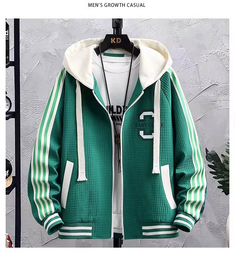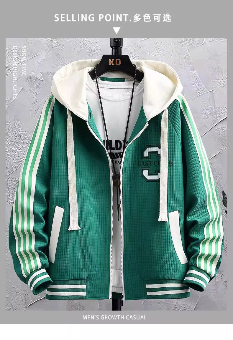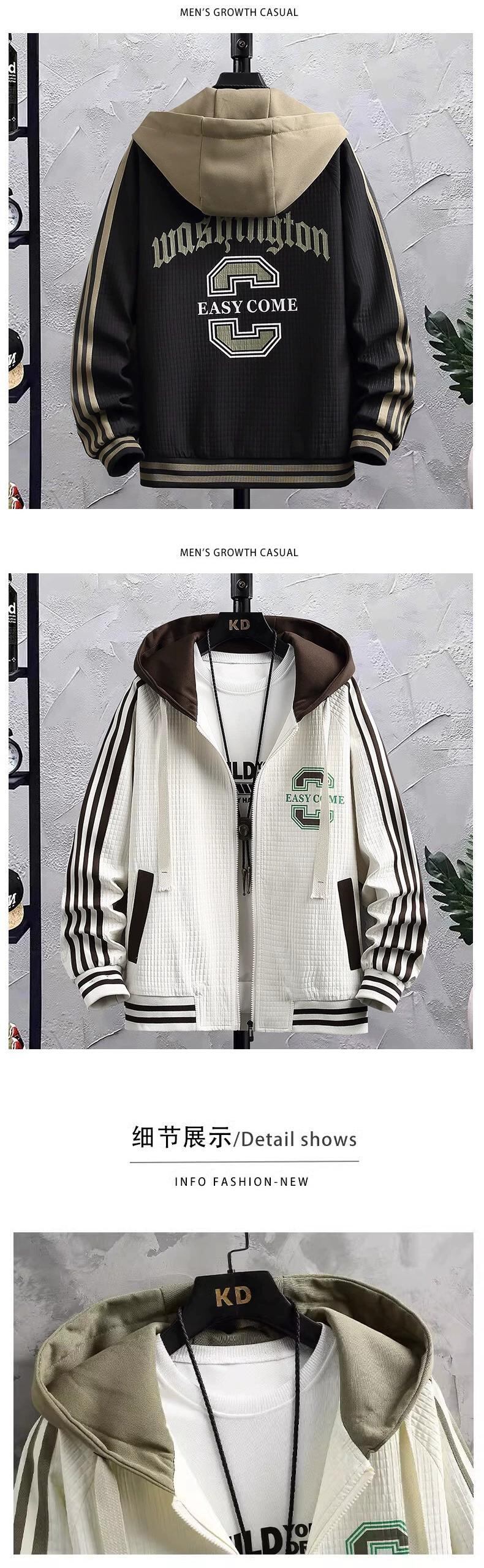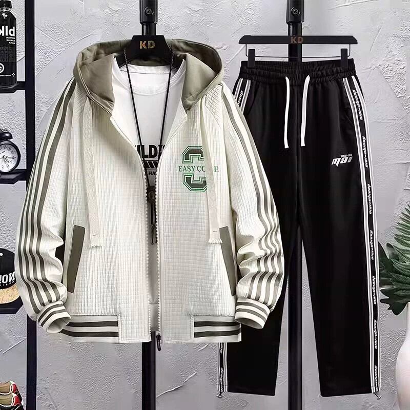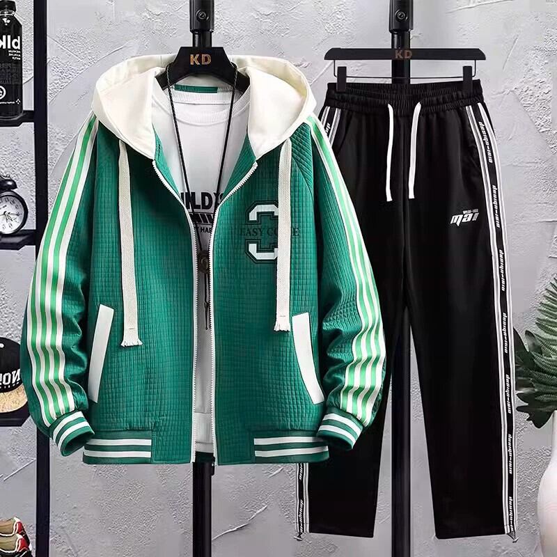 秋の新スタイルユースフェイクツーピースジャケットセット、大きな子供用ワイドバージョン抗シワフード付きジャケット、メンズスウェットパンツツーピースセット オータム 秋物 undao14901025079