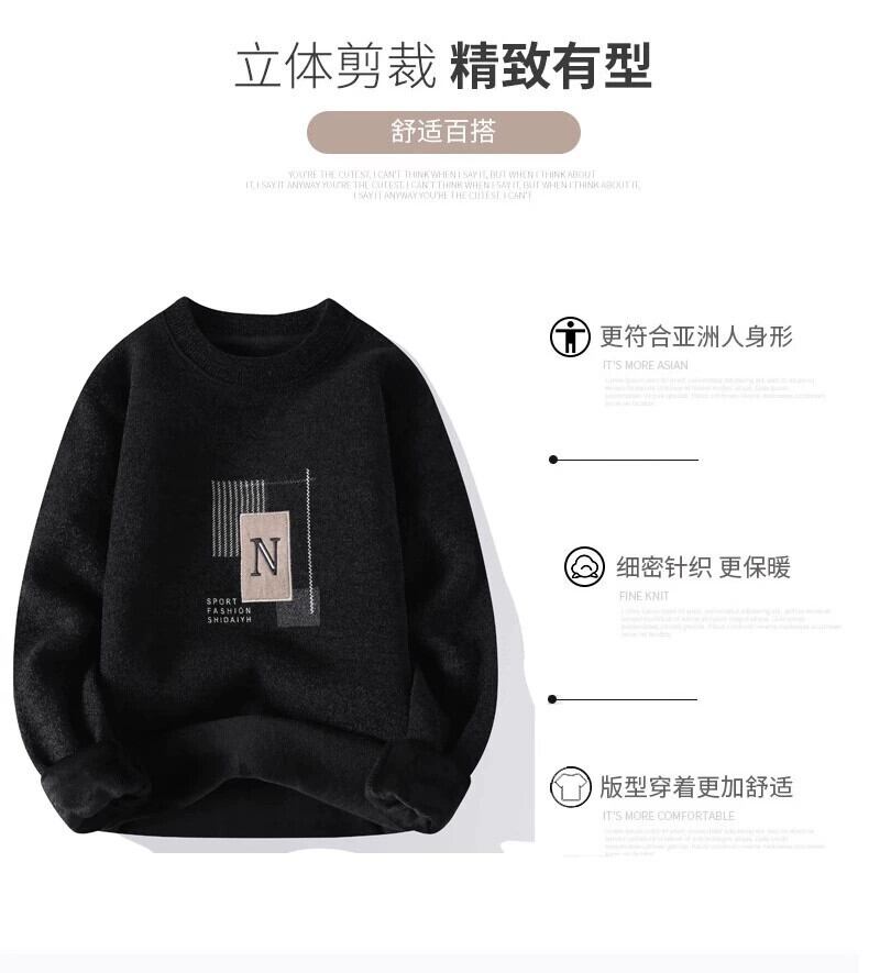 2023 秋と冬の刺繍メンズラウンドネックベルベット肥厚スウェットシャツ若者暖かい長袖 Tシャツトレンド ロング レッド オータム 秋物 ウィンター 冬物 Oネック undao58325858778