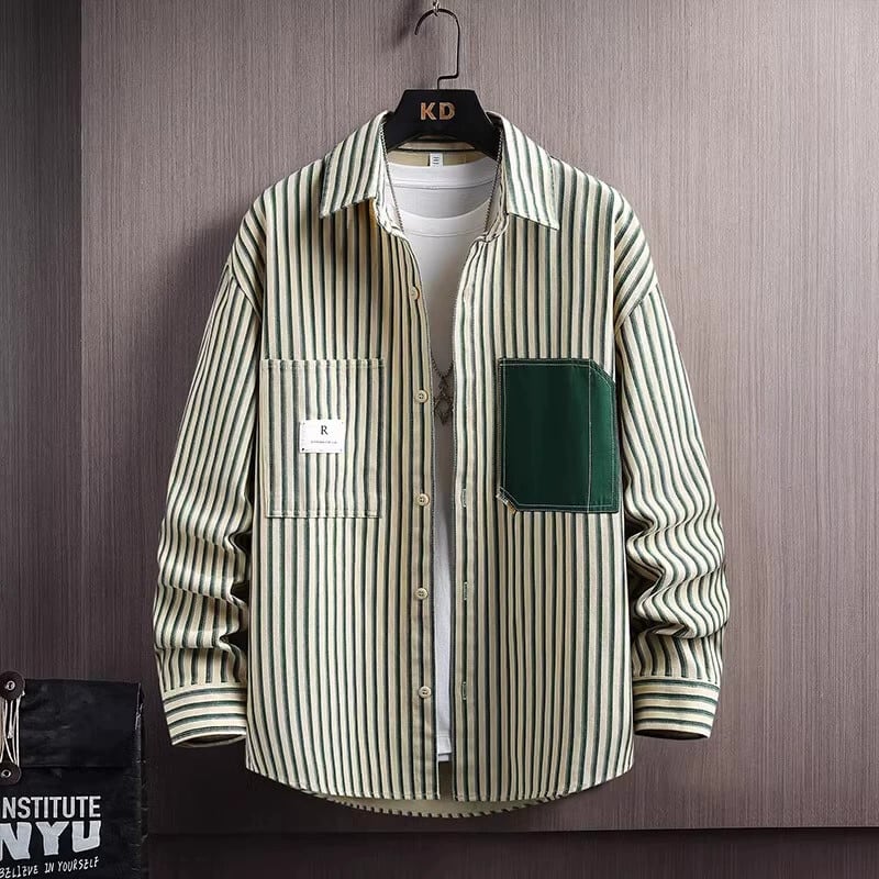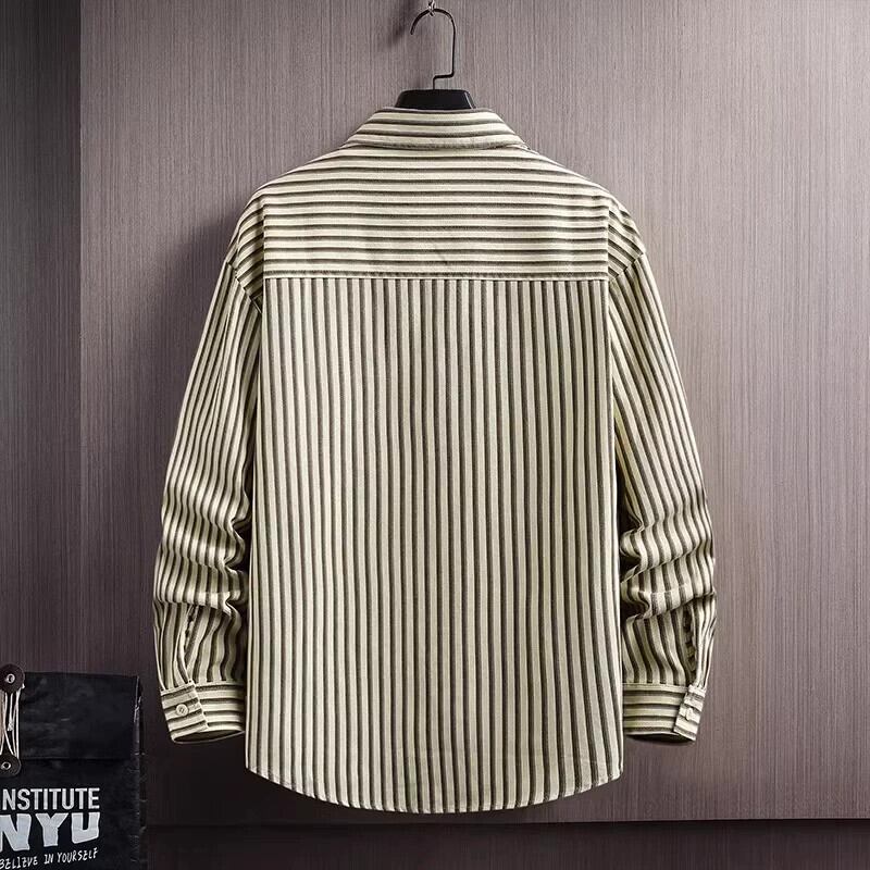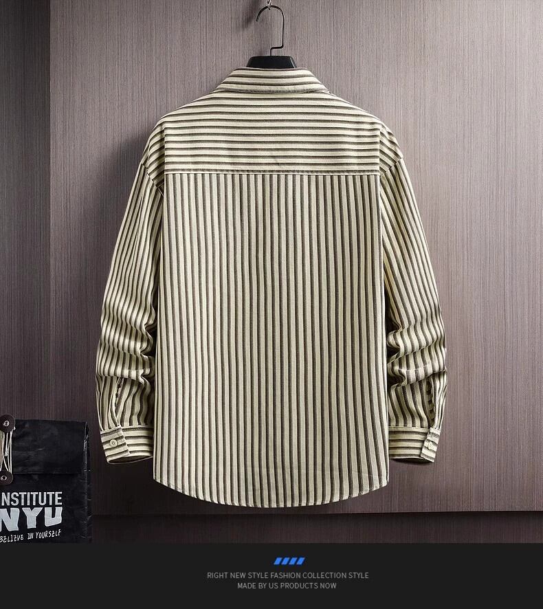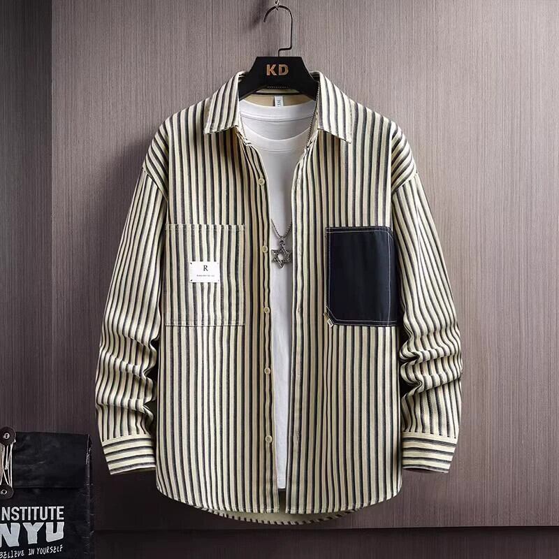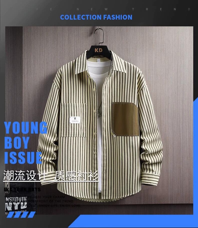 秋のハイエンド純綿学生ストライプ長袖シャツメンズインファッションブランドハンサムファッションカジュアルシャツジャケット ロング コットン オータム 秋物 ピュア undao73846713880