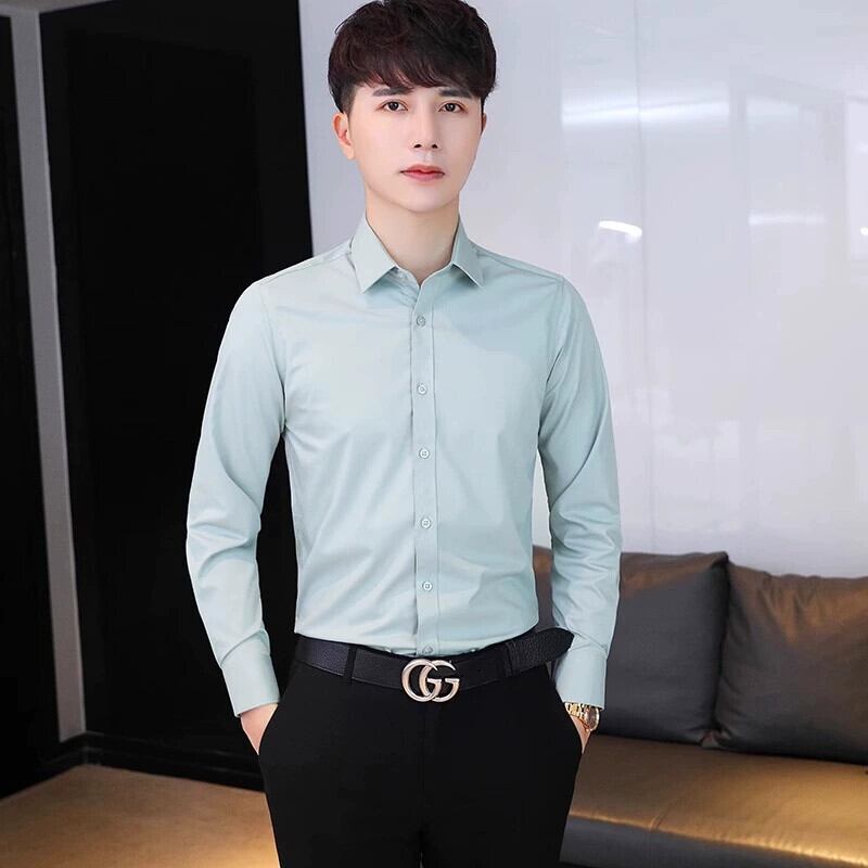 ストレッチ春秋シャツメンズ長袖カジュアルビジネスマルフィットフリーアイロン掛け大きいサイズ無地高級シャツ ロング 大きめサイズ スプリング 春物 オータム 秋物 ソリッドカラー undao87667466905