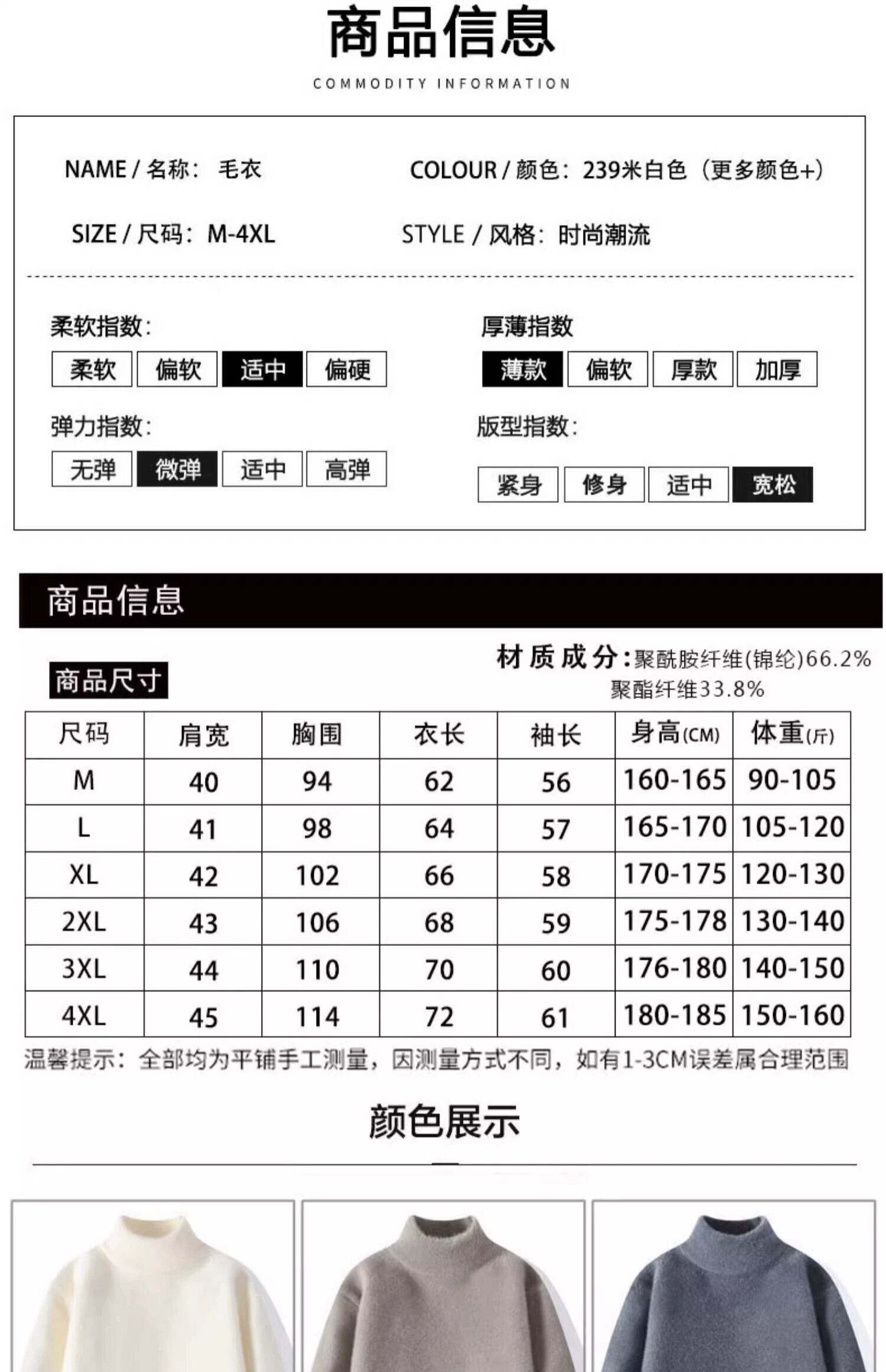 秋と冬のハーフタートルネックセーターメンズとベルベットと厚みのあるミンクベルベットのニットボトムシャツと冬の暖かい服 オータム 秋物 ウィンター 冬物 undao90038849043
