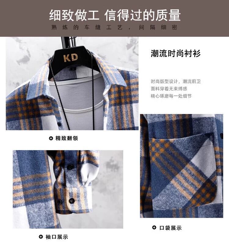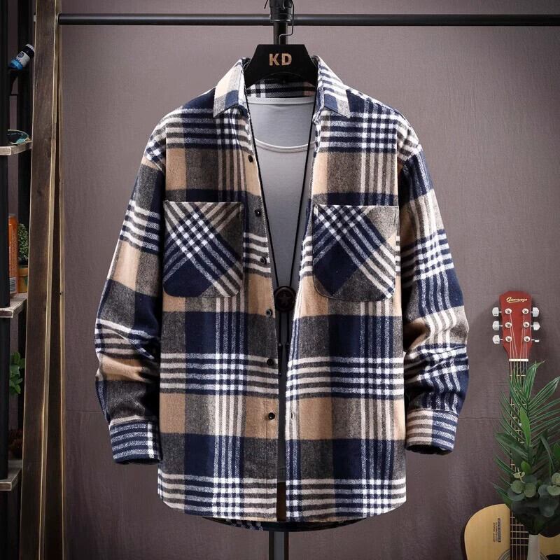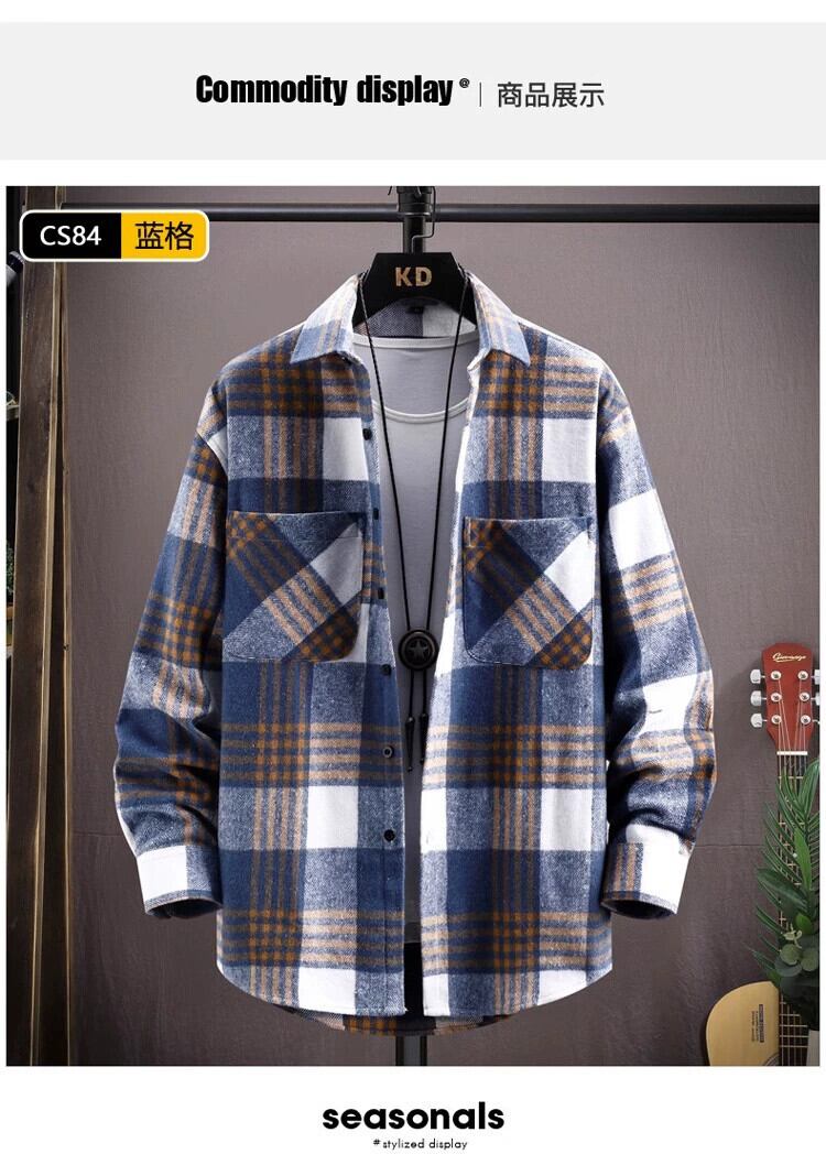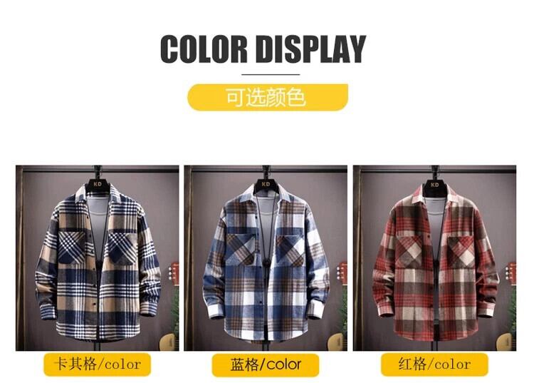 ユース起毛チェック柄シャツメンズ作業服長袖トレンディブランドルーズインチシャツ学生シャツ多用途カジュアルジャケット ロング undao1919202299