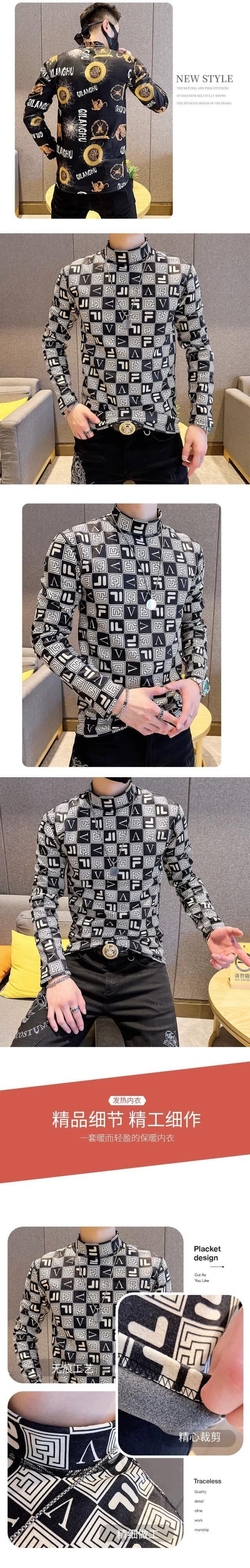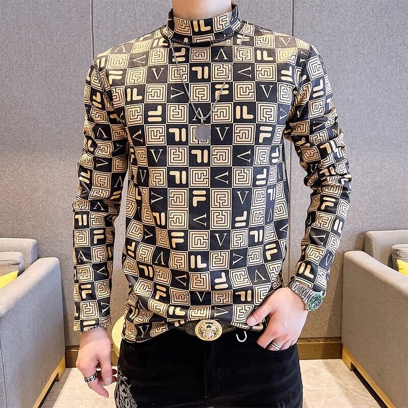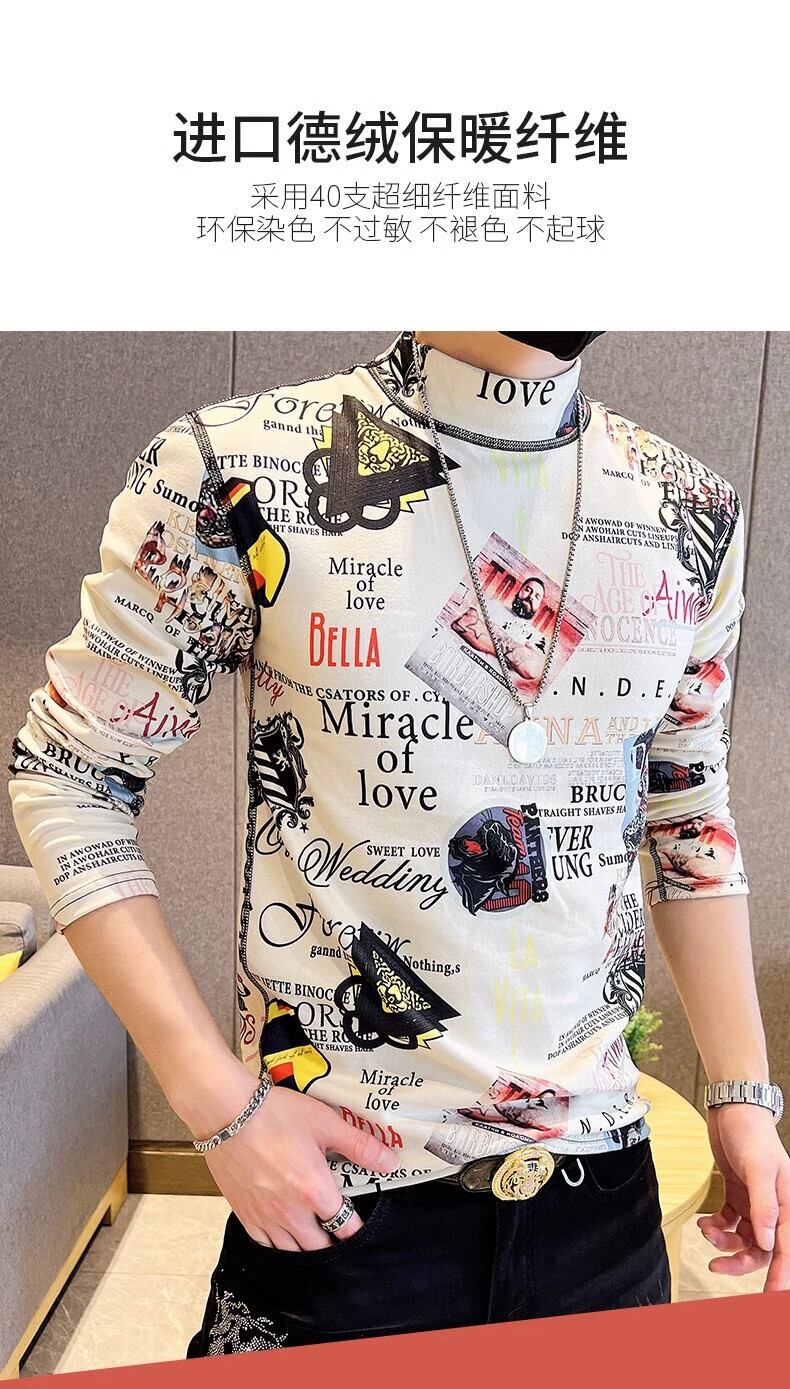 メンズファッショナブルなプリント長袖Tシャツ新しい秋冬ハーフタートルネックスリム暖かいボトリングシャツトレンディな秋のトップT ロング オータム 秋物 ウィンター 冬物 undao36845600085