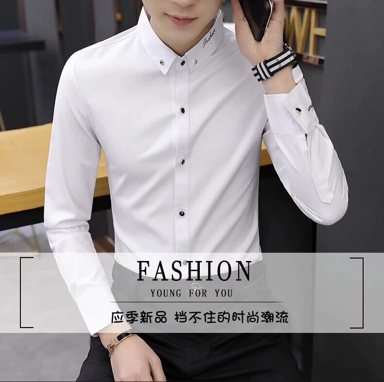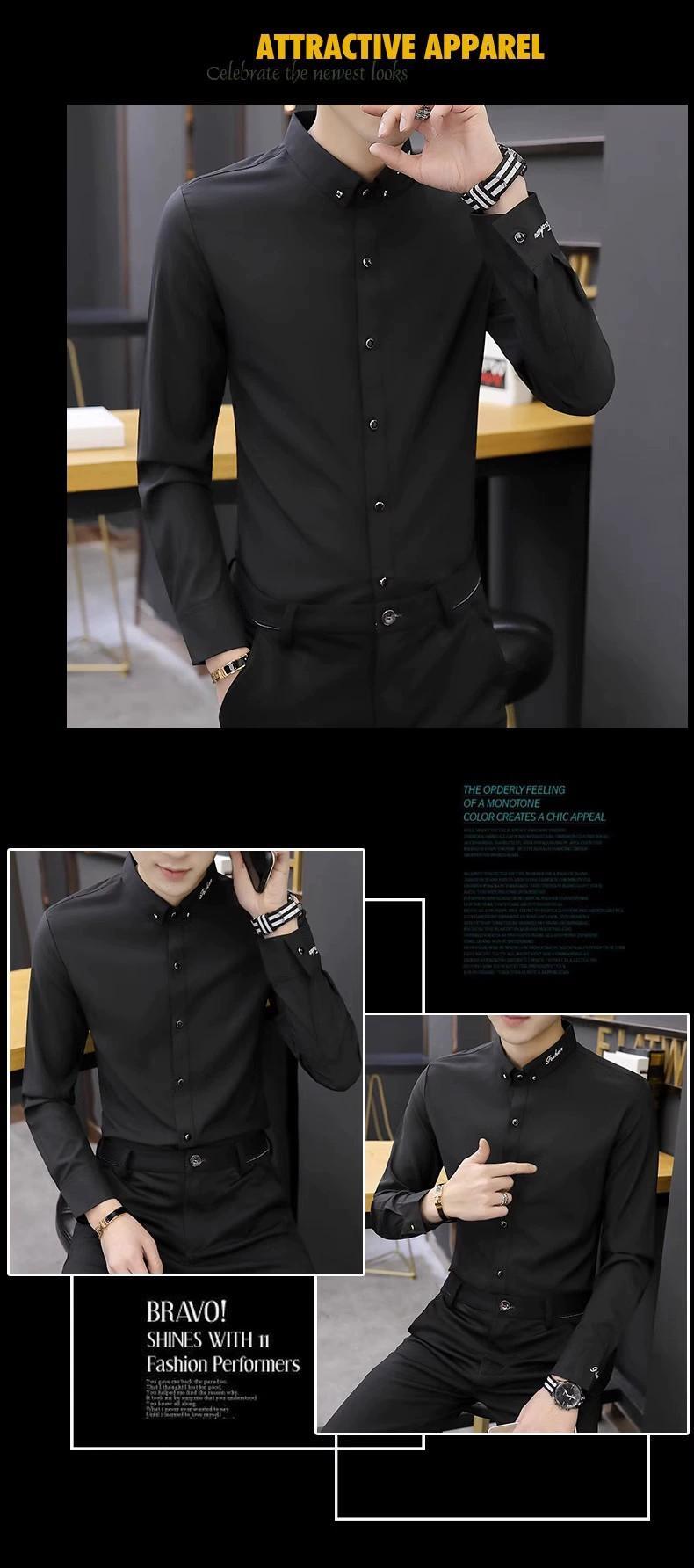 秋シャツメンズ長袖抗しわノーアイロンブラックシャツメンズスリムスタイルハンサムストレッチプラスベルベット厚手インチシャツ ロング オータム 秋物 undao66236026048