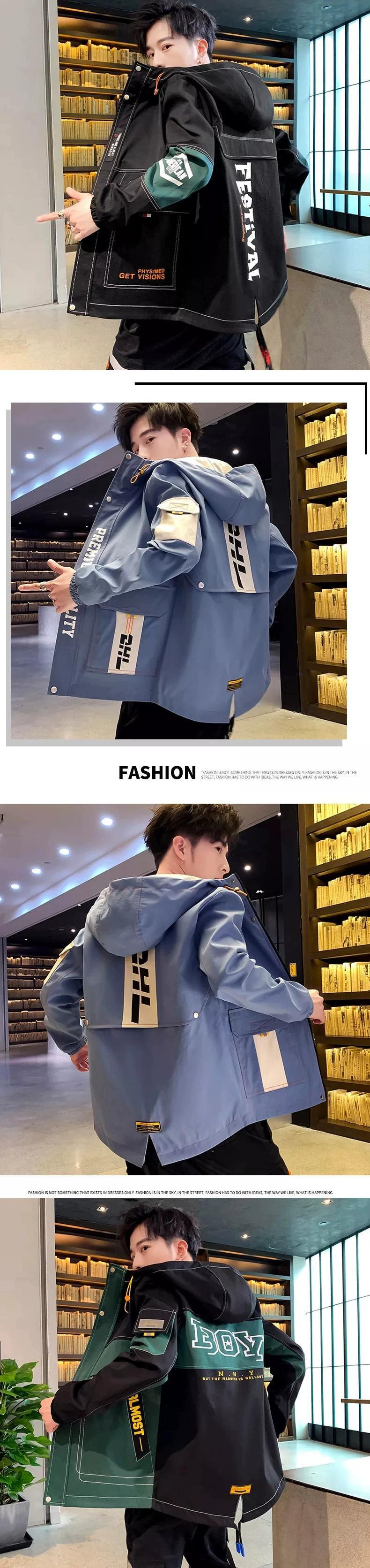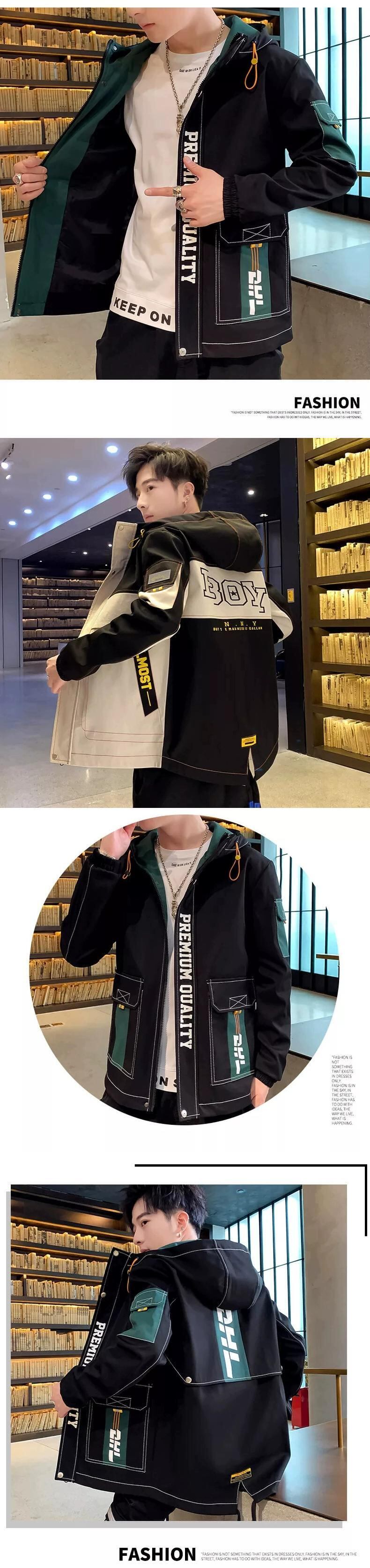 メンズウインドブレーカーミッドレングス2023新しいトレンディでハンサムな秋と冬ルーズワークウェアフード付きガウンジャケット オータム 秋物 ウィンター 冬物 undao83014992846