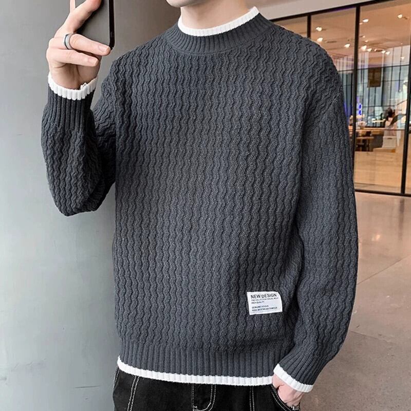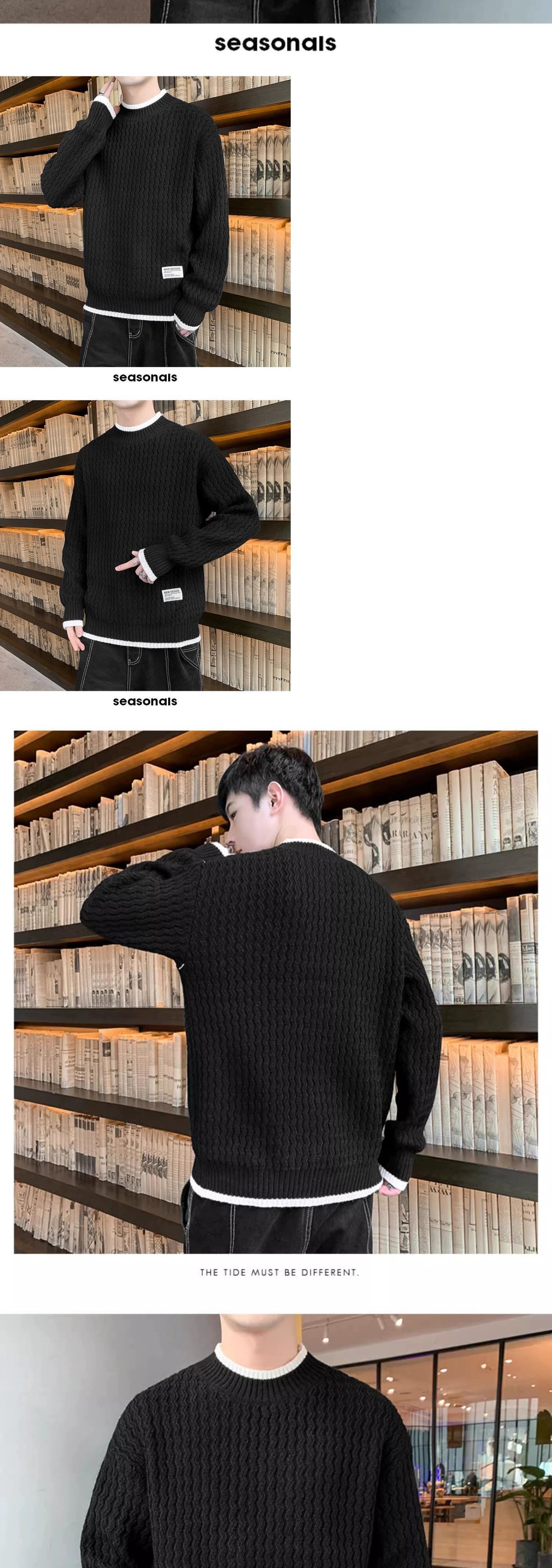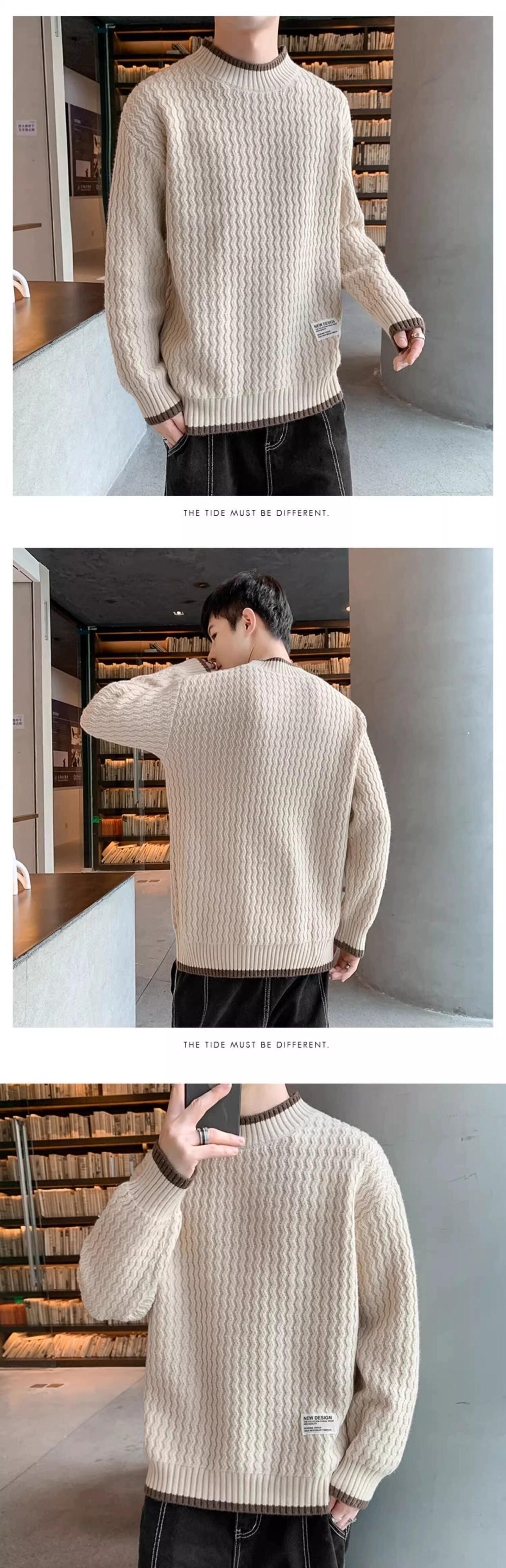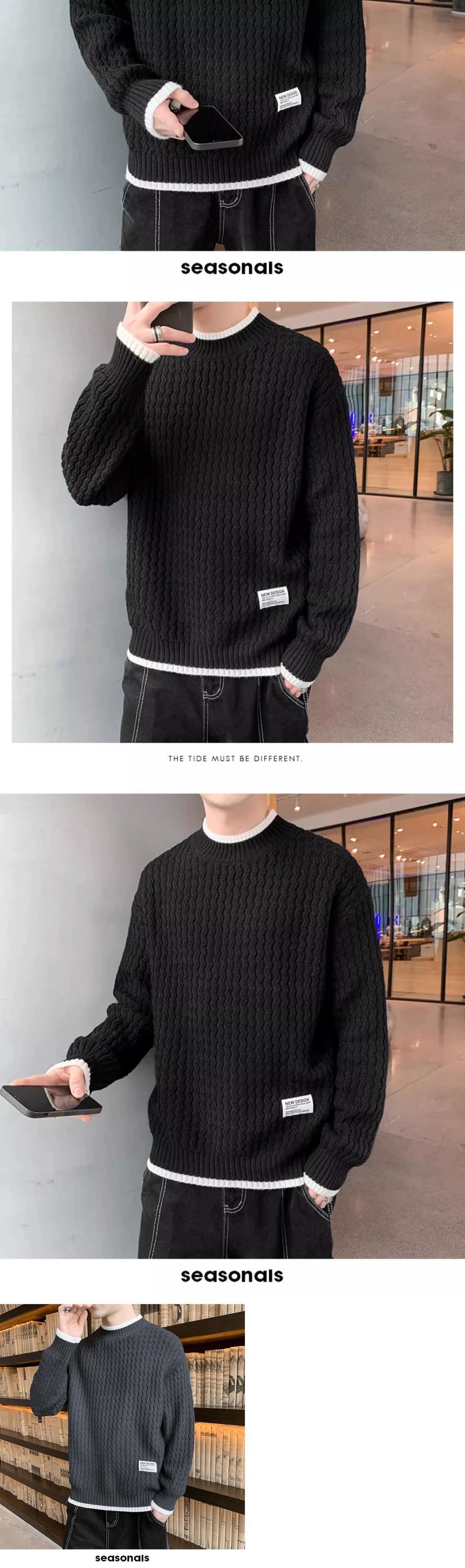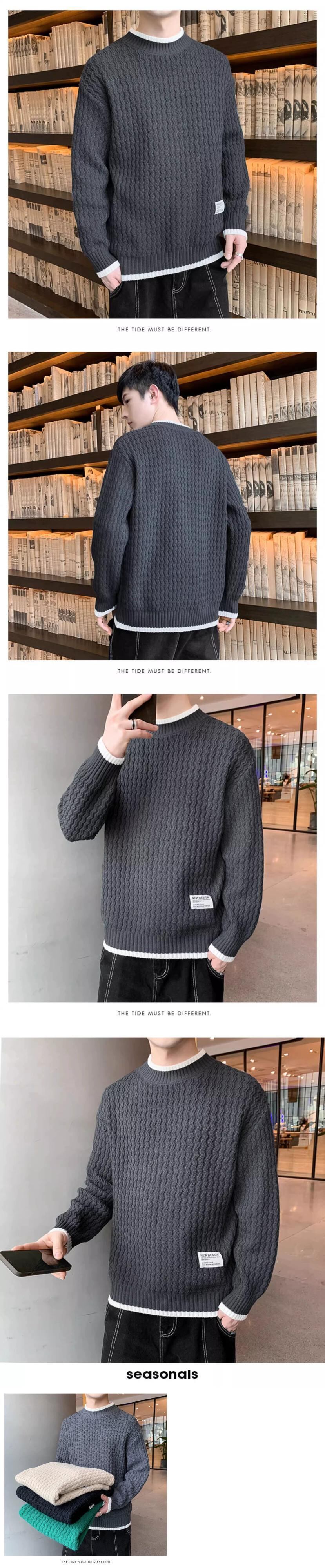 波模様のセーターメンズ秋と冬のトレンディなブランドセーター服偽ツーピースセーターとルーズハーフタートルネックセーター オータム 秋物 ウィンター 冬物 undao43851383544