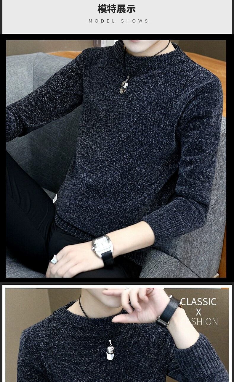 長袖 T シャツ メンズ 2023 秋冬の新しいスウェットシャツとベルベットと厚みのあるシェニール ニット ボトム シャツ セーター ロング オータム 秋物 ウィンター 冬物 Tシャツ undao55383242226
