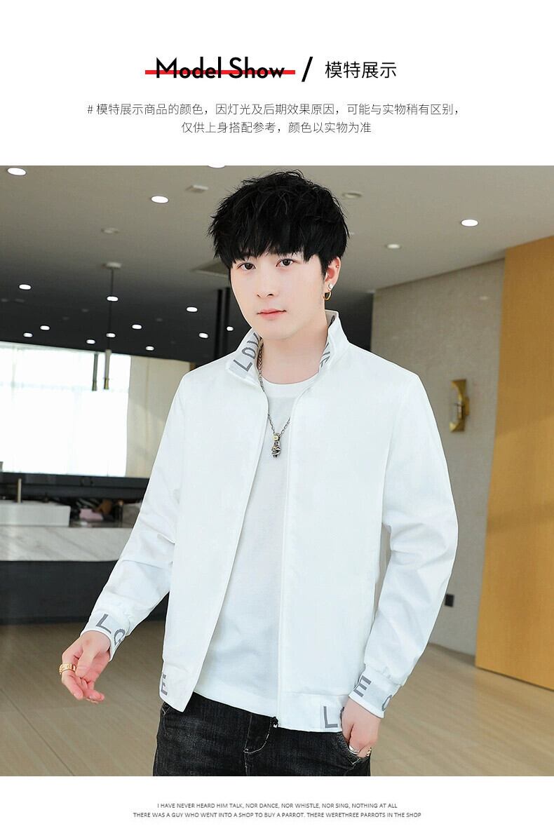 2023 メンズスタンドカラーホワイトジャケット春秋ジャケットスタイルトレンディメンズ スプリング 春物 オータム 秋物 undao17906909451