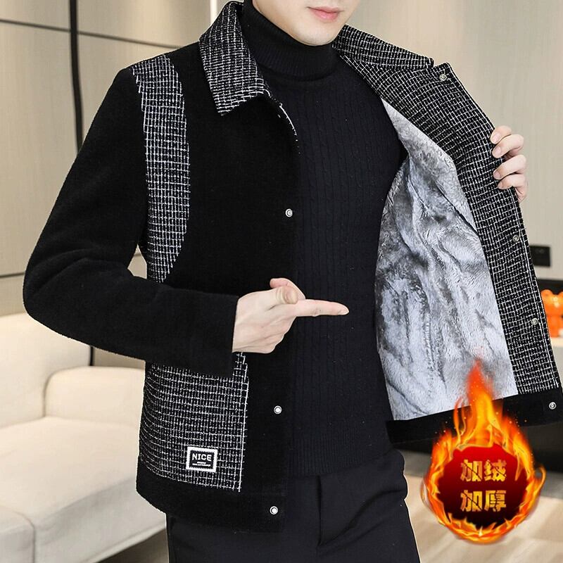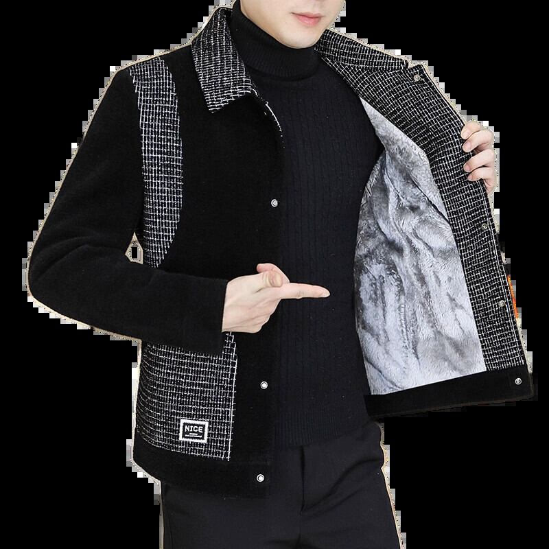 ファー一体型イミテーションファーメンズフルミンクベルベットライナーショートラペルユースウールコットン服ジャケット冬 ウィンター 冬物 undao10369914625