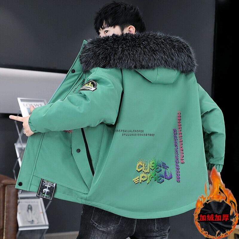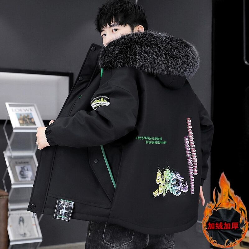 綿コートメンズ冬 2023 新しいトレンディなブランドプラスベルベット肥厚綿ジャケットフード付き毛皮の襟若者綿コート コットン ウィンター 冬物 undao53815332776